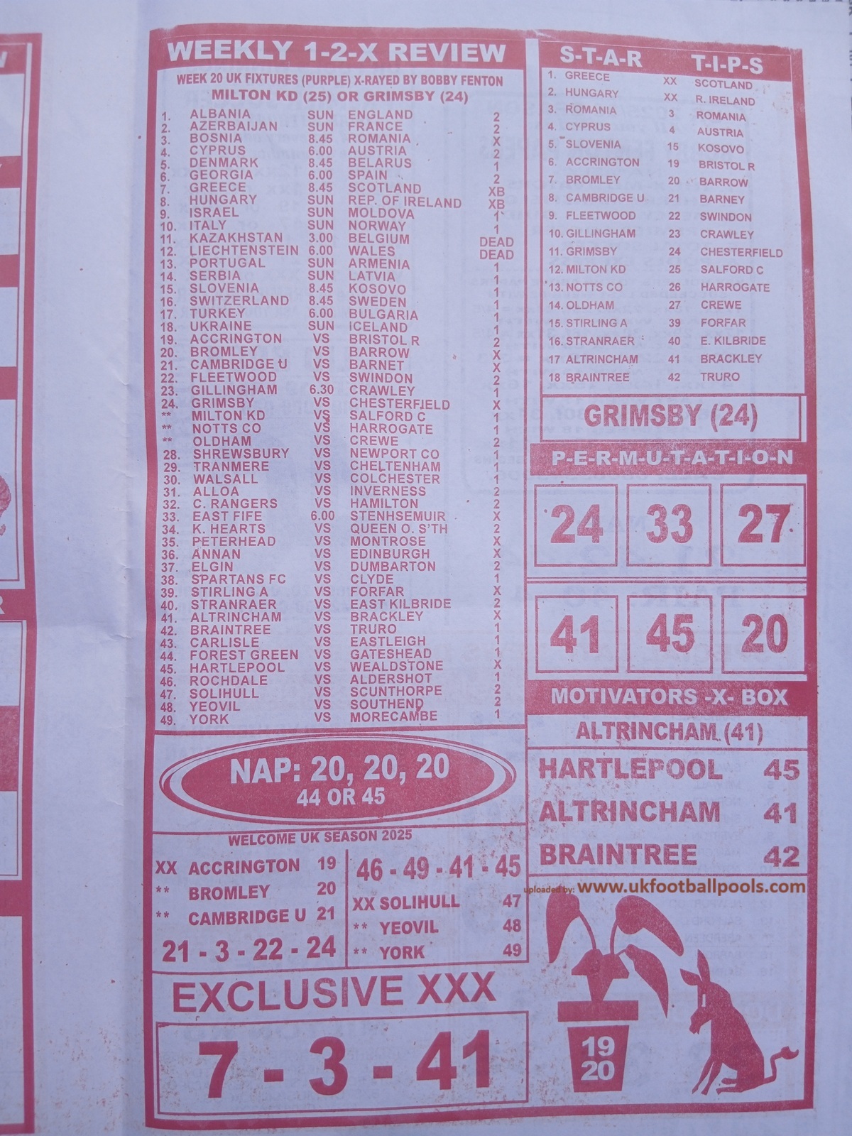 - Current Week 42 Pool Results for Sat, Apr 19 2025 - UK 2024/2025 Pools