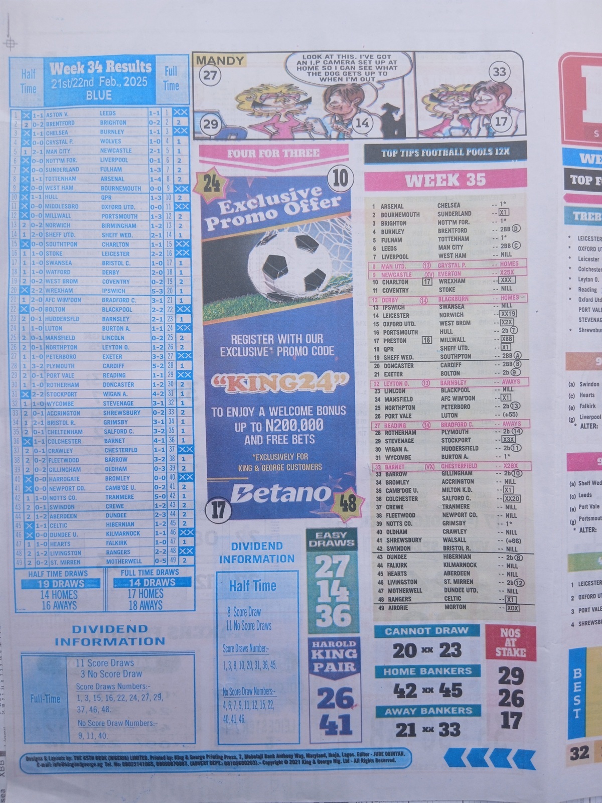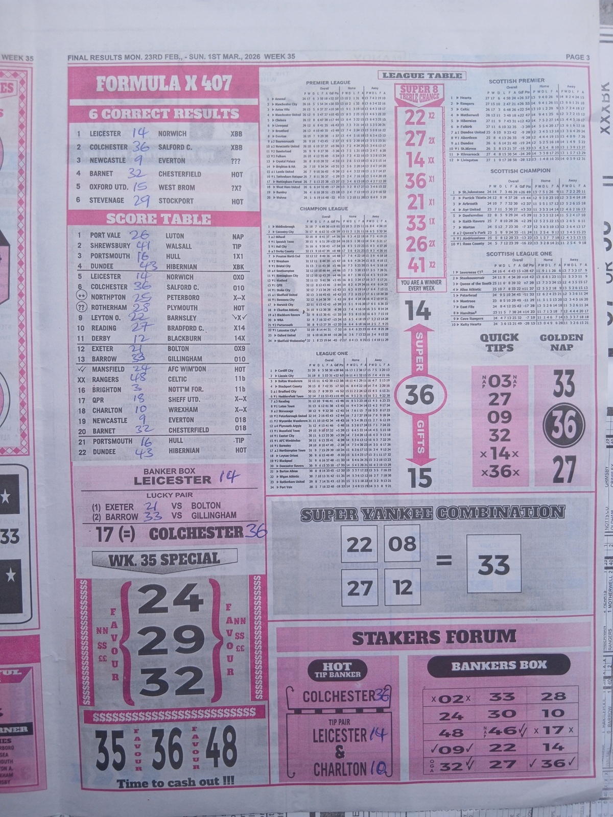 - Current Week 35 Pool Results 2026 For Sat, Feb 28 - UK 2025/2026 Pools