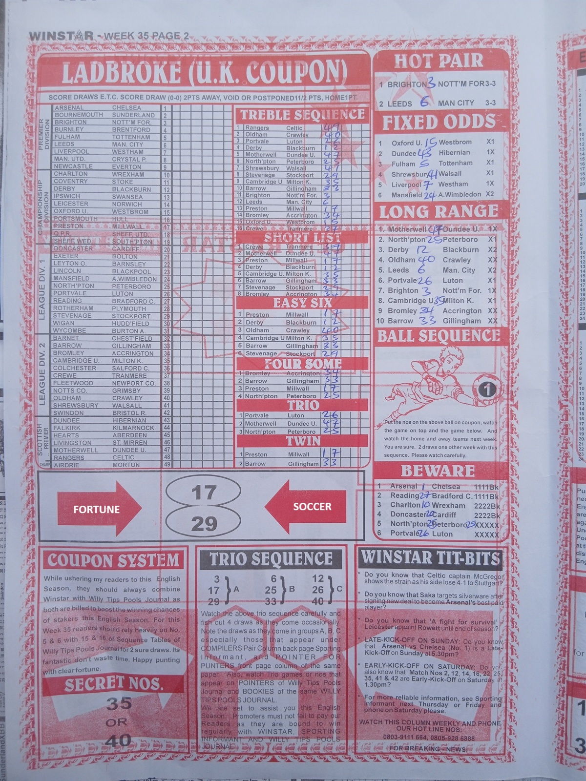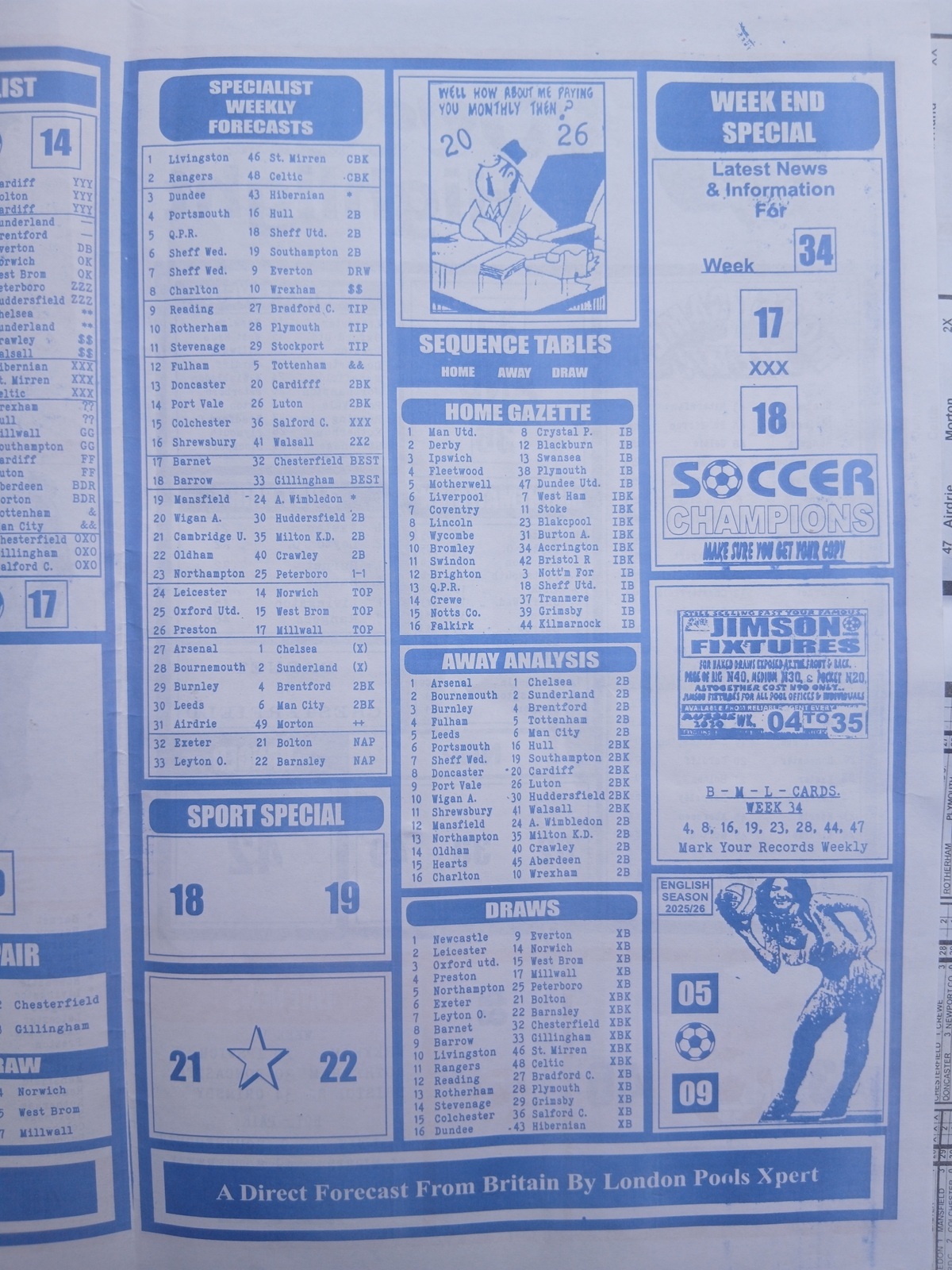 Week 35 Late News Papers: the late editions and specialized pool papers published specifically for pool compilers and punters — are not just collections of picks. They are the product of hours (often decades) of dedicated observation: pattern recognition across seasons, reading manager/team news, injury and suspension updates, pitch and weather considerations, crowd effects, and statistical tendencies such as form cycles and home/away differentials.