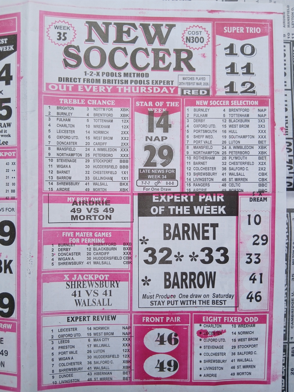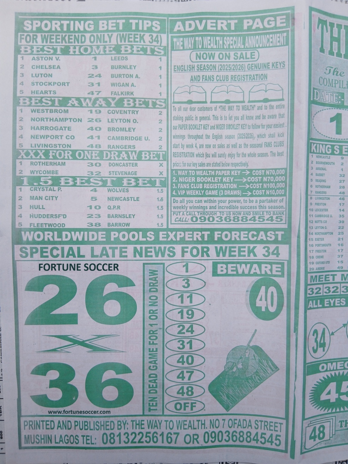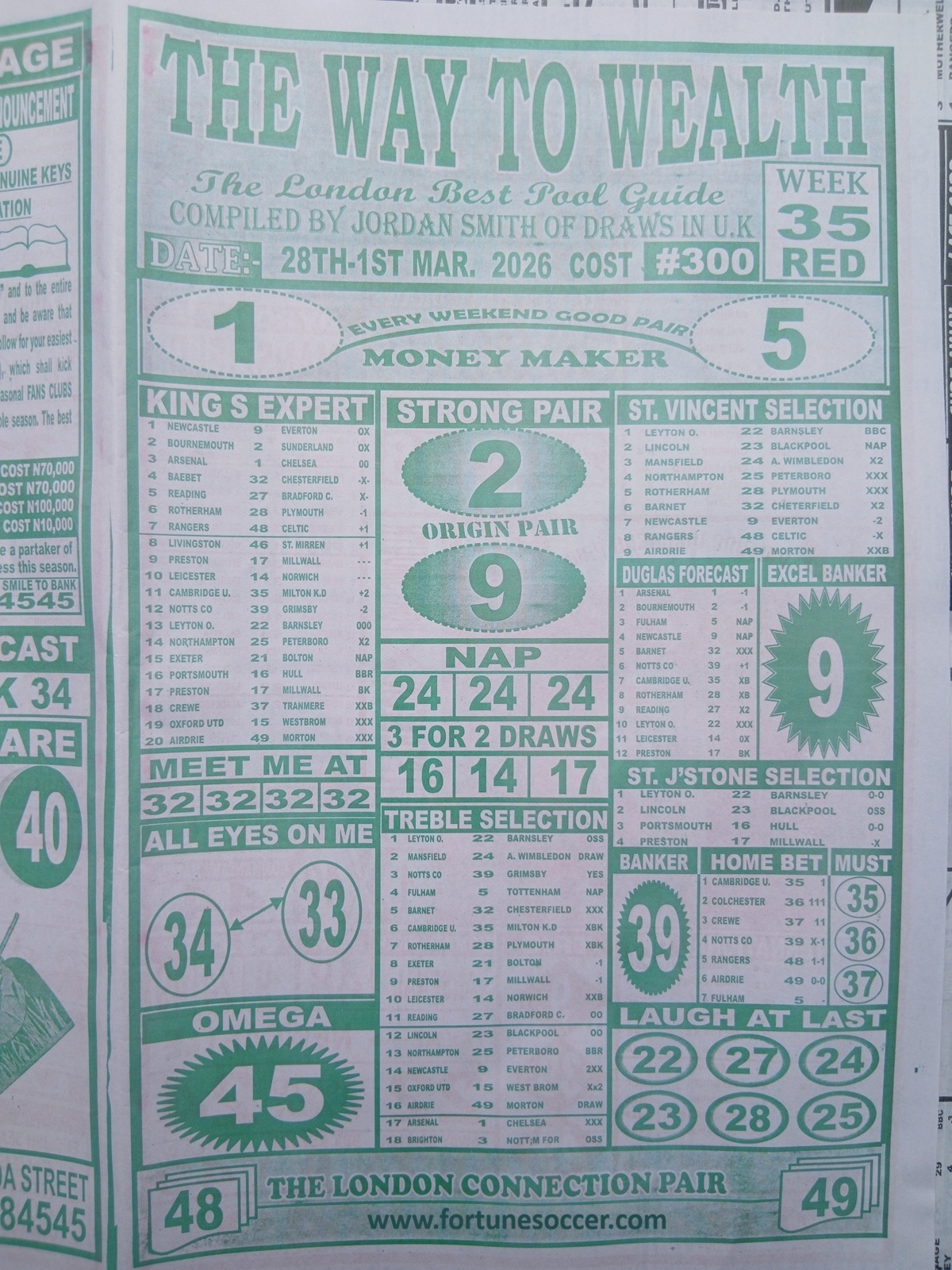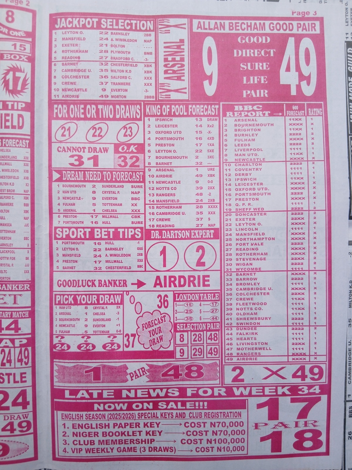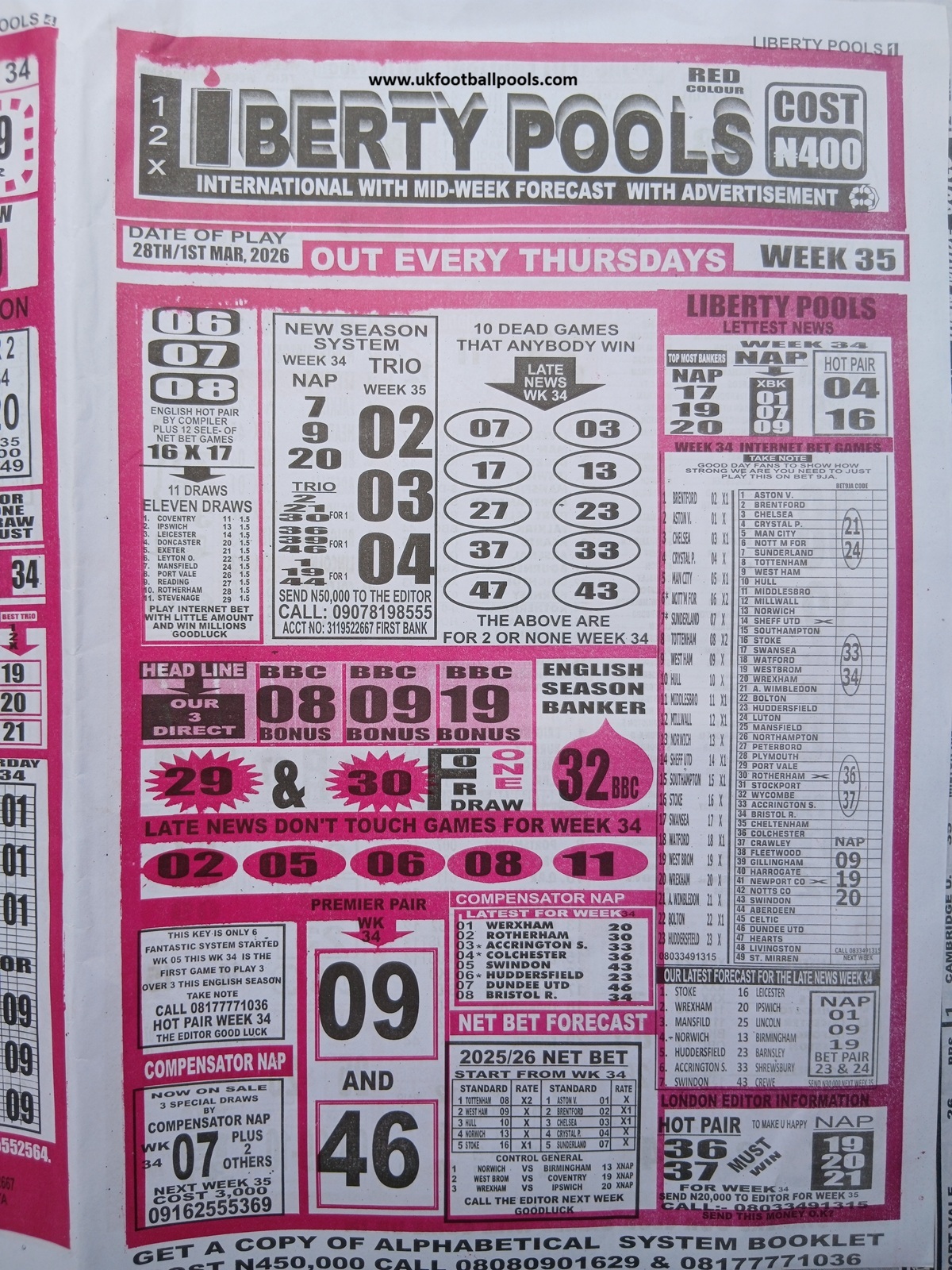 CHECK ALSO: Current Week 35 Pool Late News Papers 2026 ~ BigWin, Pools Telegraph, Temple Of Draws