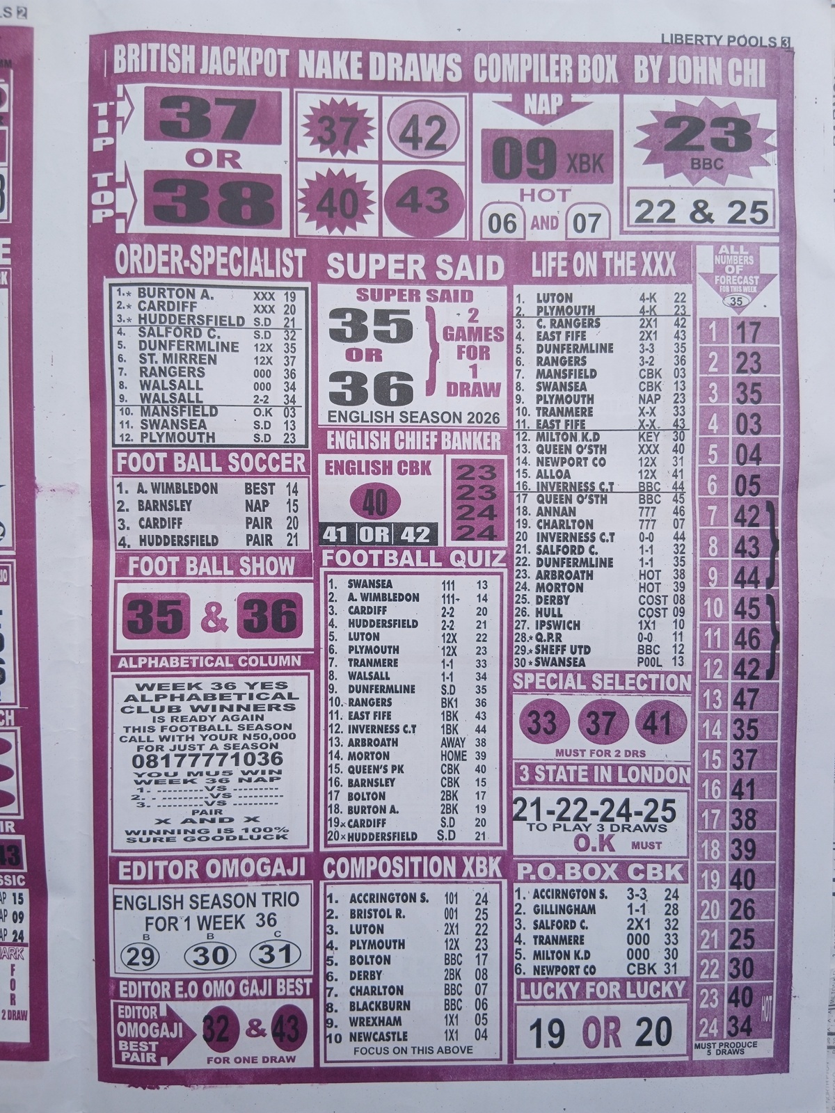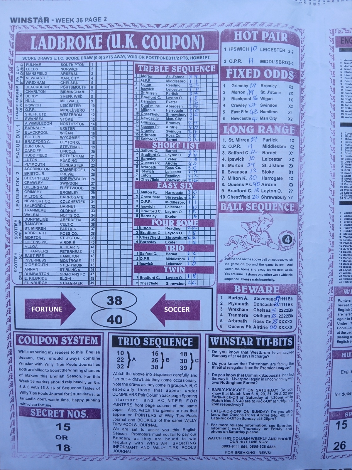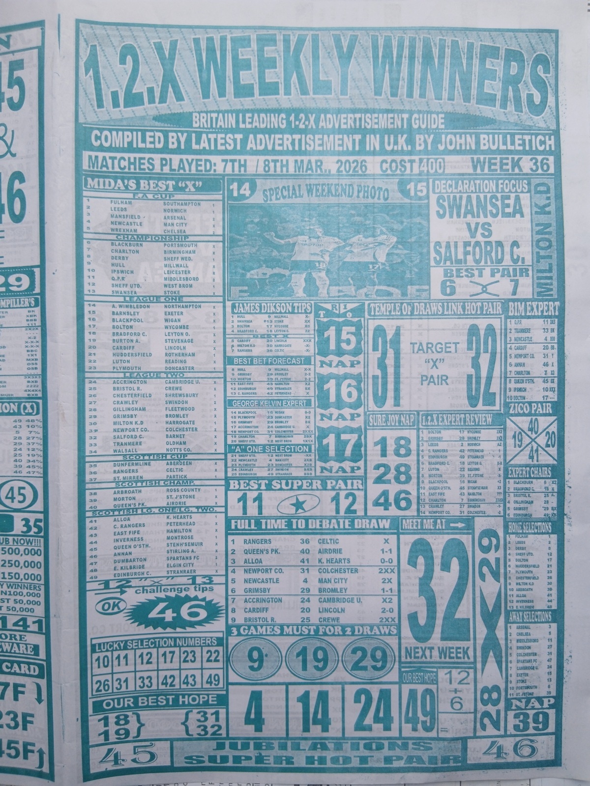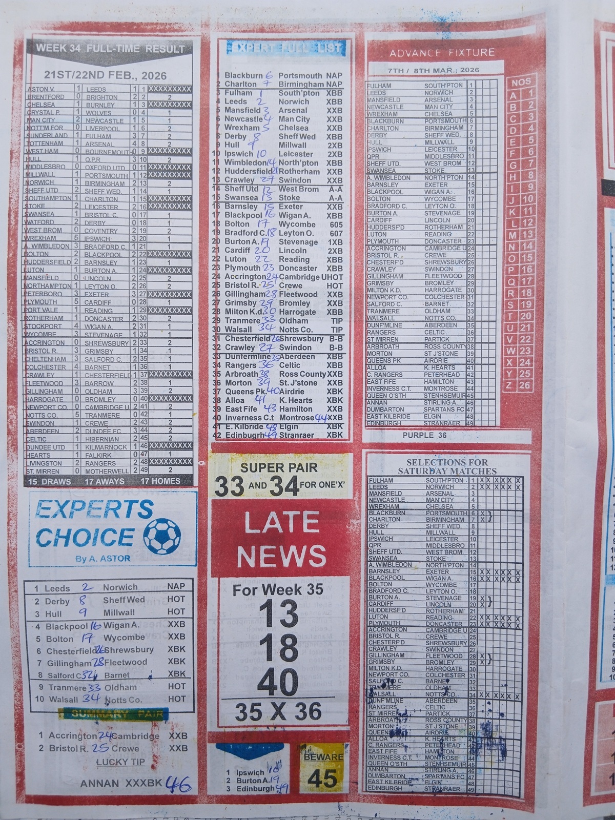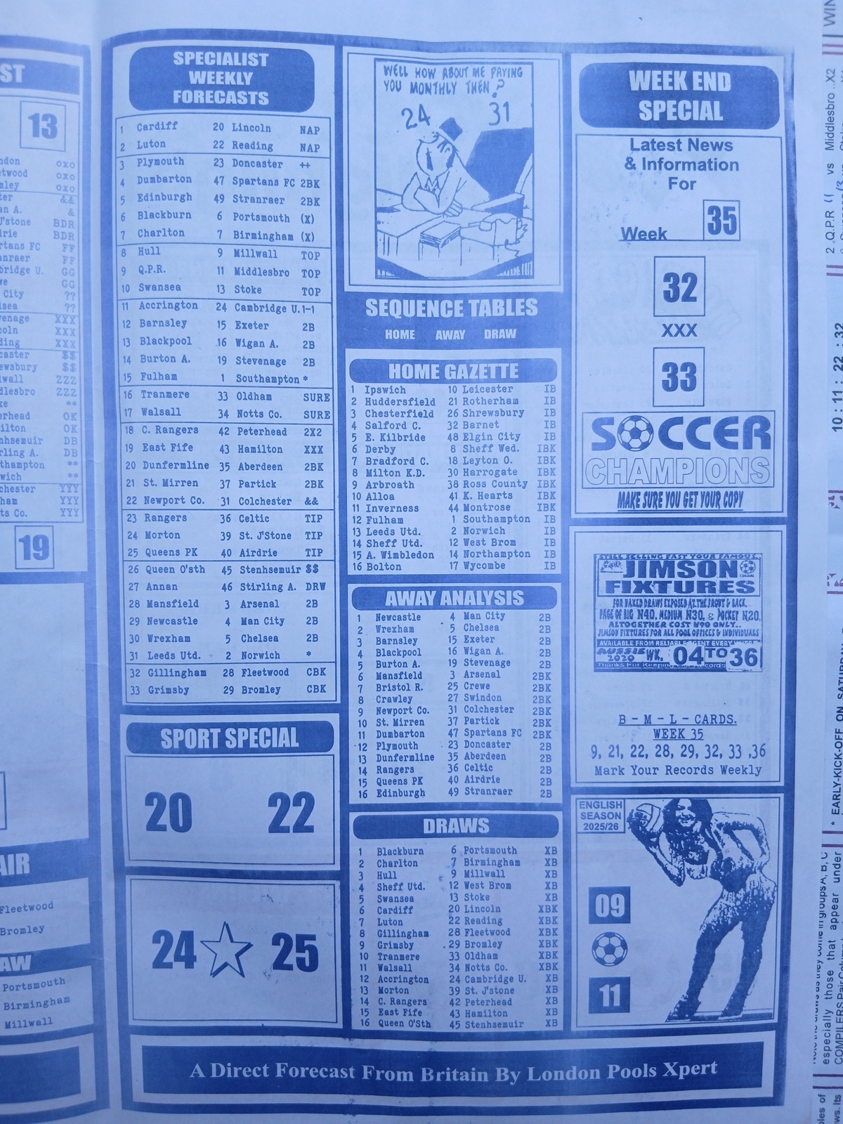 Week 36 Late News Papers: the late editions and specialized pool papers published specifically for pool compilers and punters — are not just collections of picks. They are the product of hours (often decades) of dedicated observation: pattern recognition across seasons, reading manager/team news, injury and suspension updates, pitch and weather considerations, crowd effects, and statistical tendencies such as form cycles and home/away differentials.