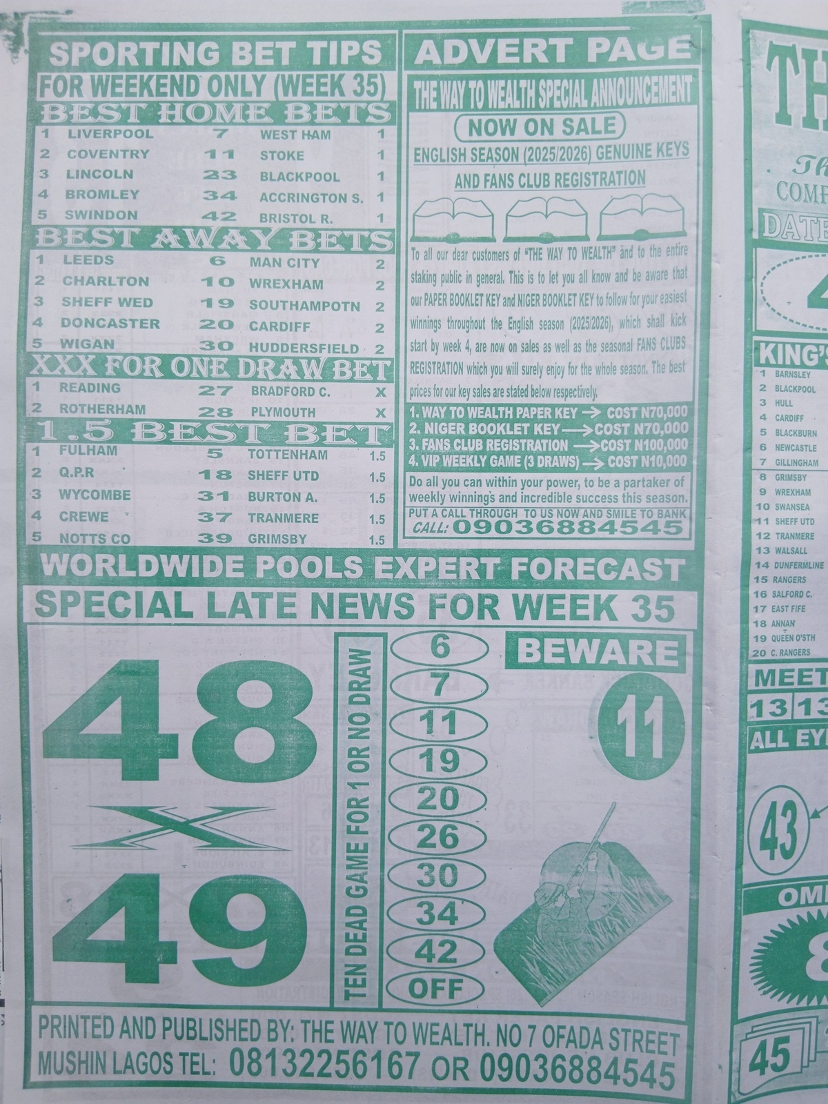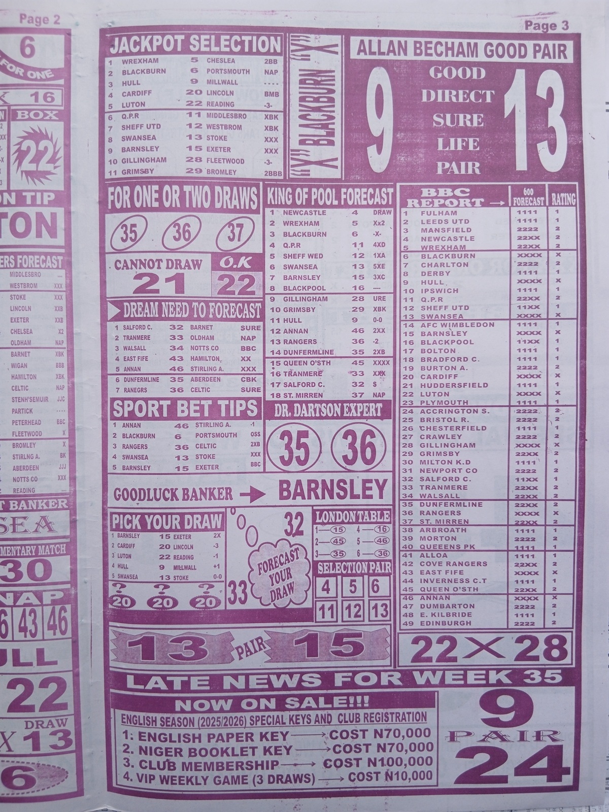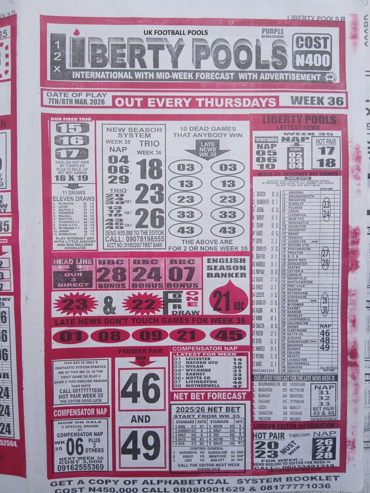 CHECK ALSO: Current Week 36 Pool Late News Papers 2026 ~ BigWin, Pools Telegraph, Temple Of Draws
