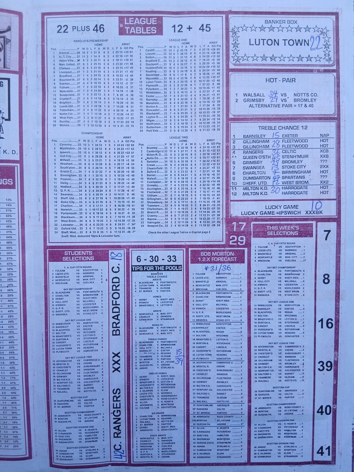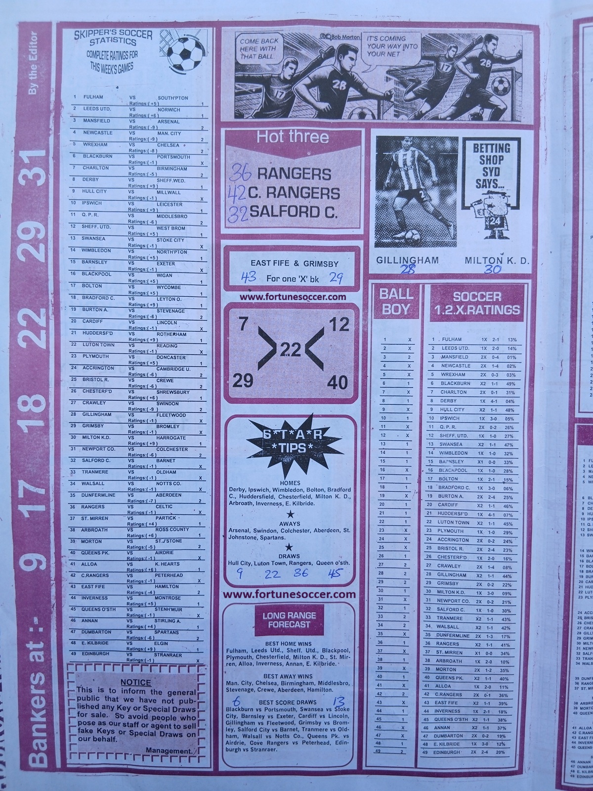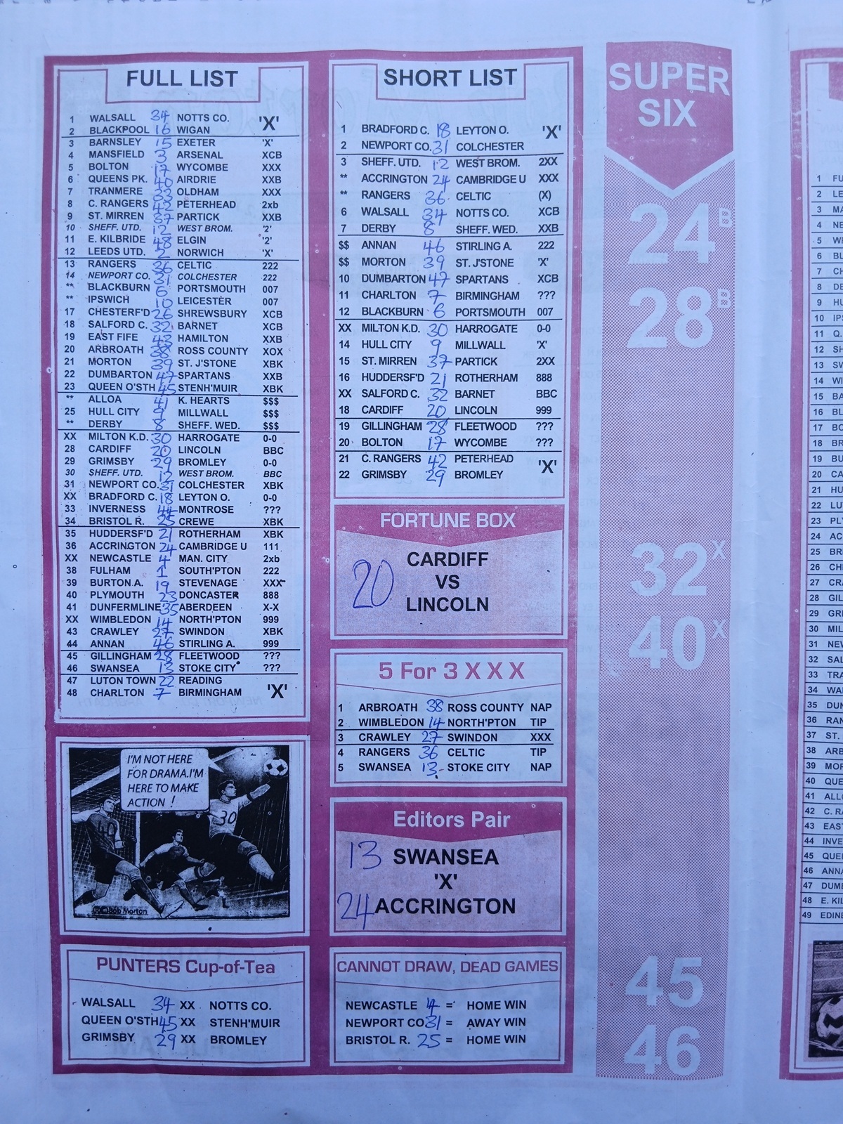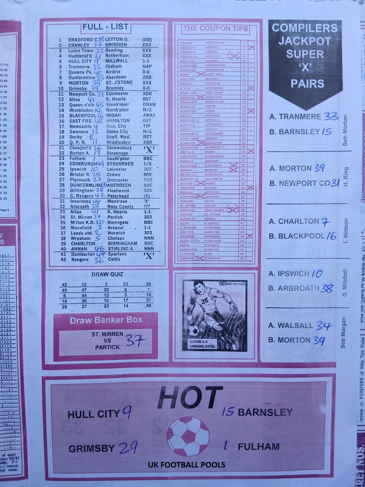 Bob Morton is a household name in the pools world. It is known for its expert compilers and highly detailed analysis.