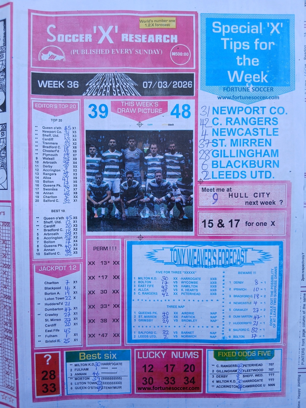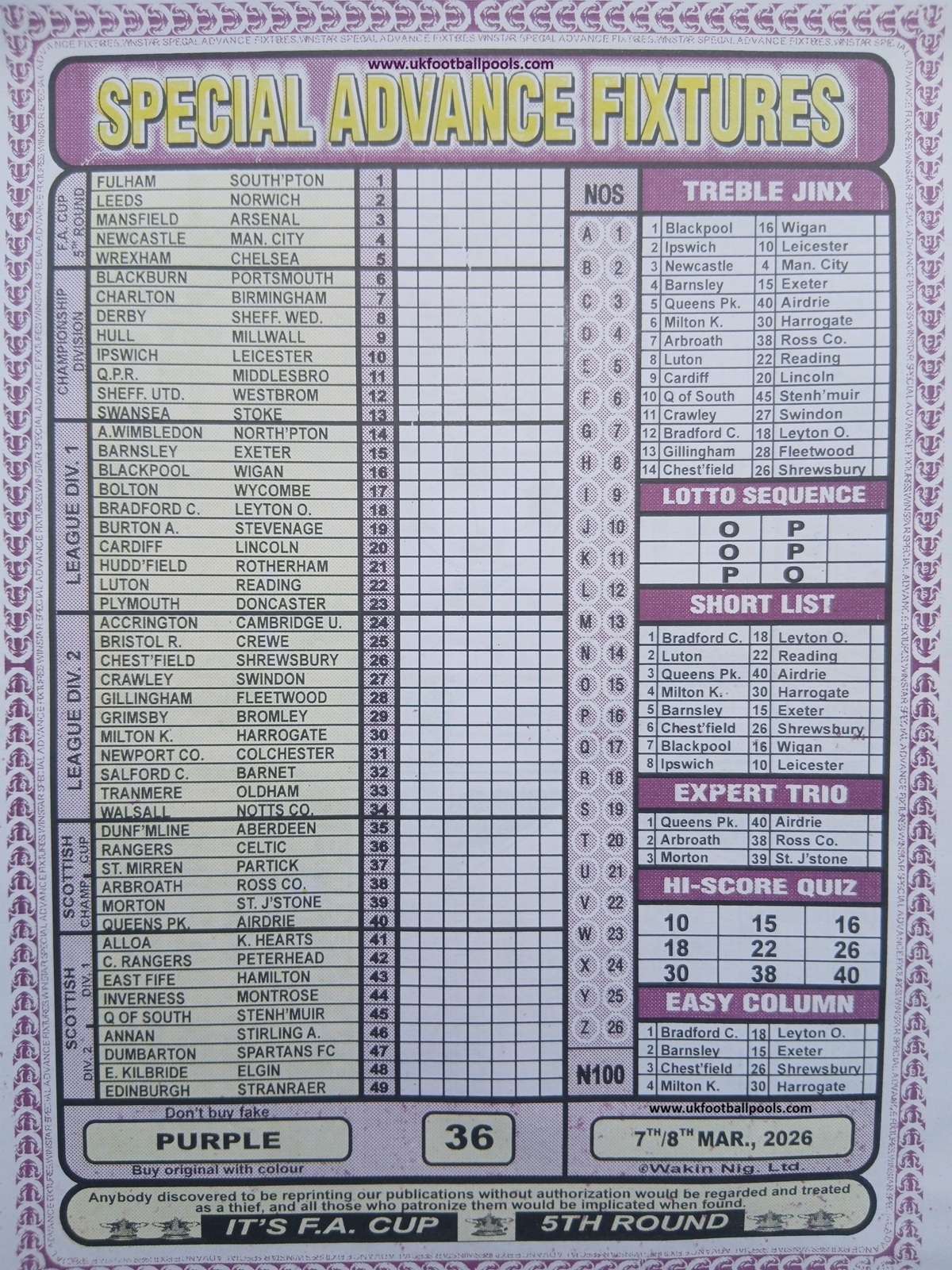 - Current Week 36 Pool Fixtures 2026 For Sat, 07 March - UK 2025/2026 Pools