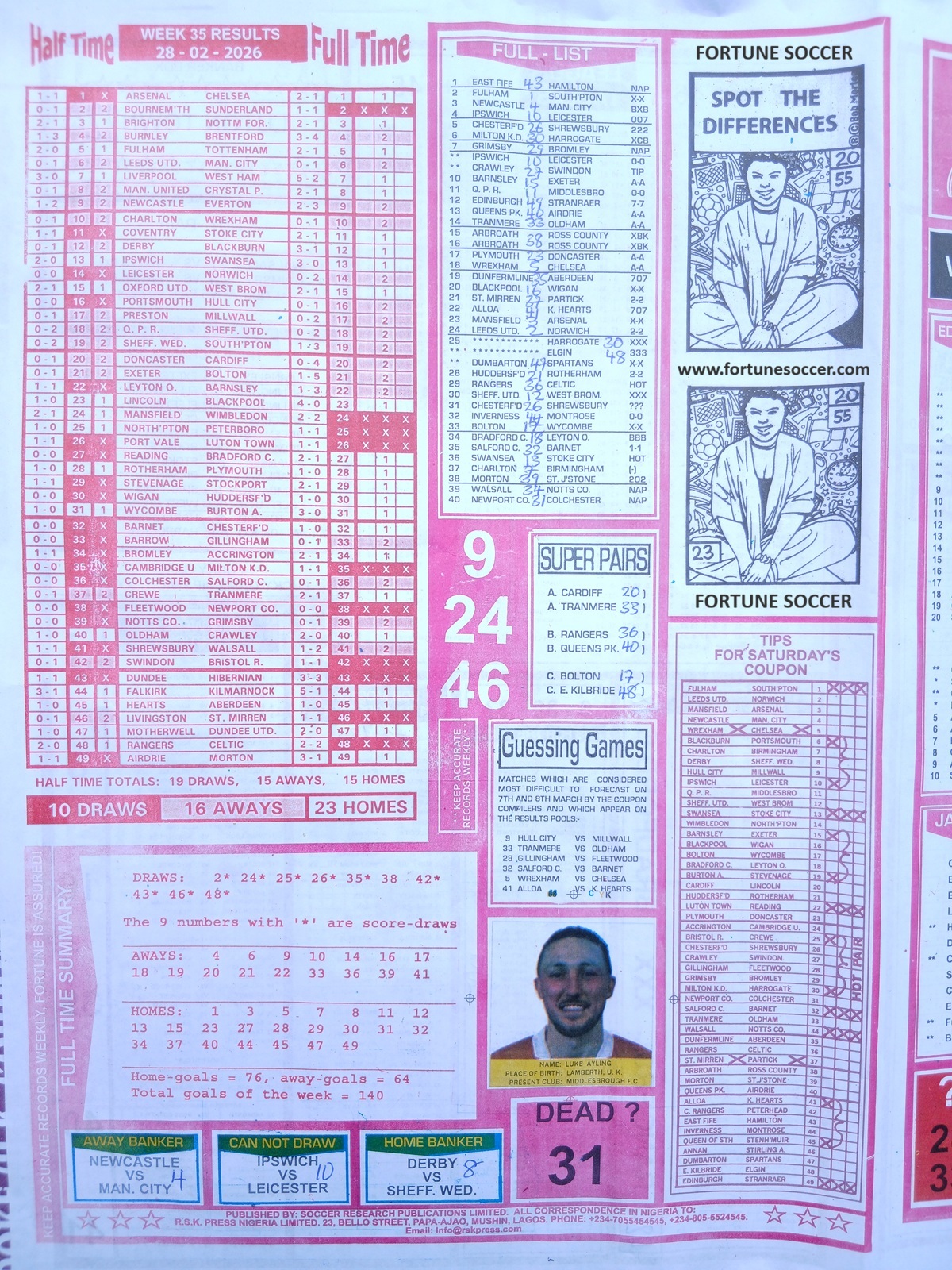 - Current Week 35 Pool Fixtures 2026 For Sat, 28 Feb - UK 2025/2026 Pools