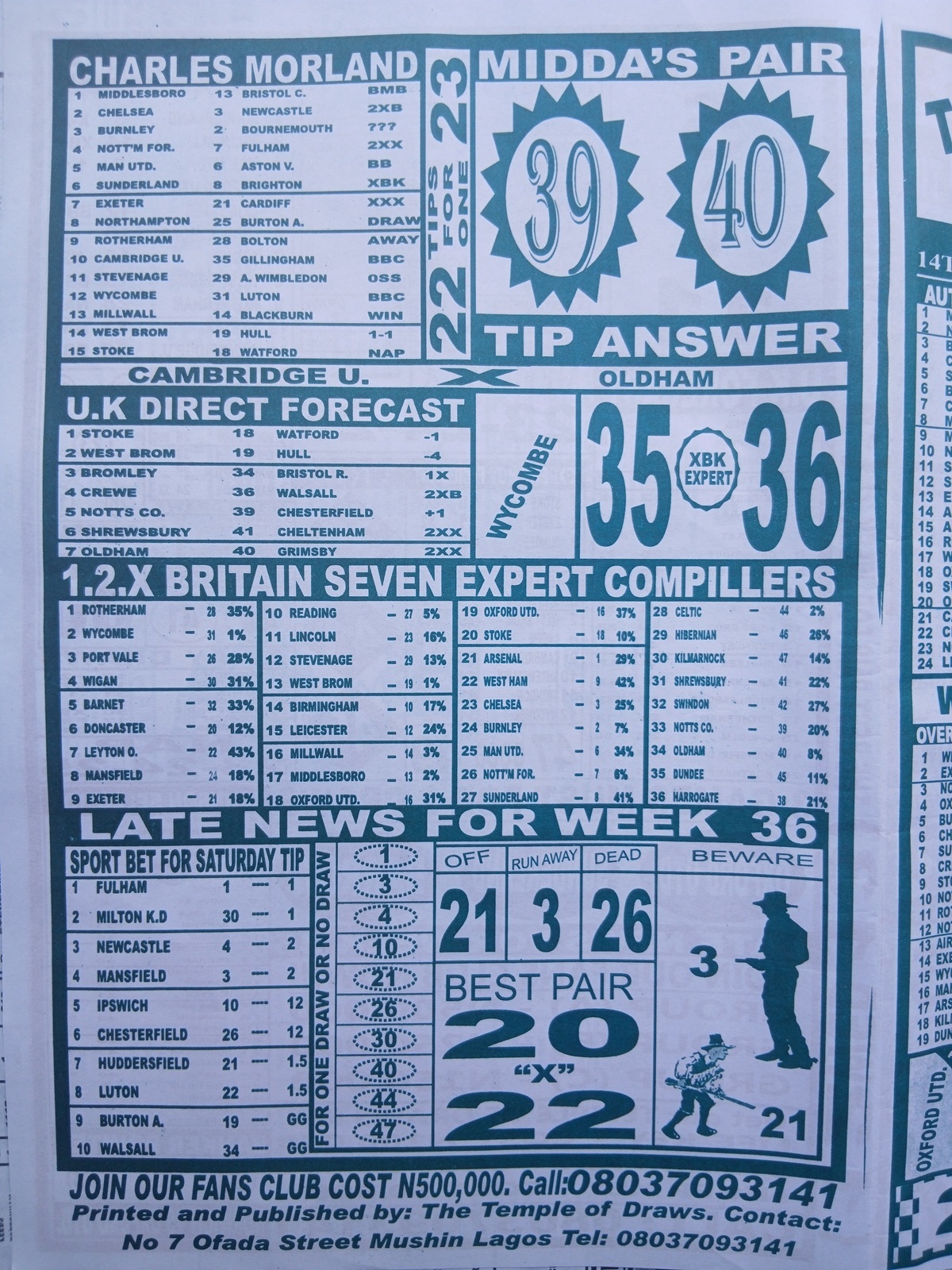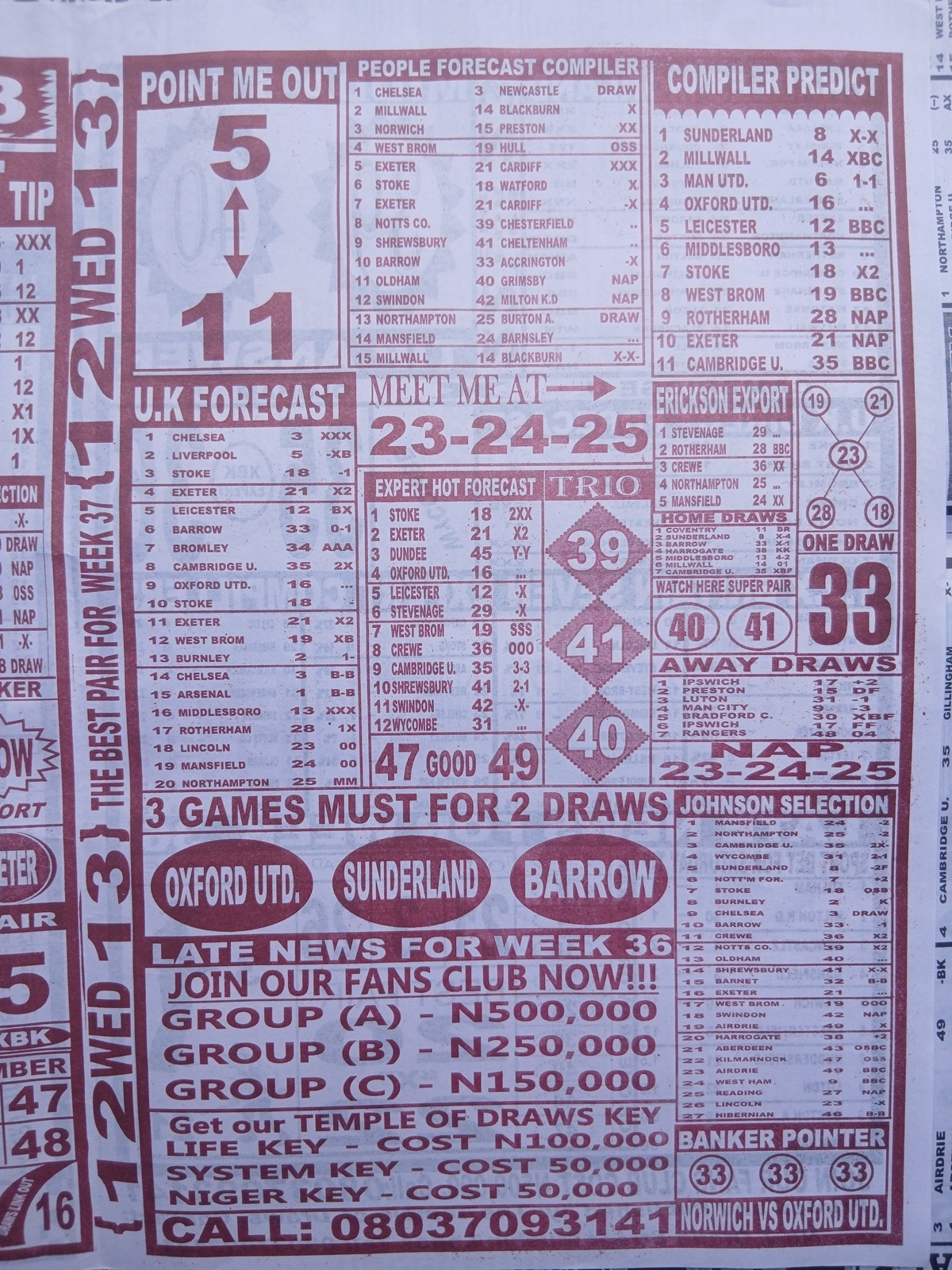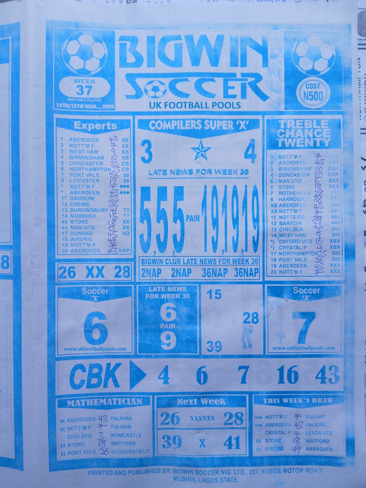 CHECK ALSO: Current Week 37 Pool Late News Papers 2026 ~ Sport Officer, Soccer Standard, Weekly Telegraph