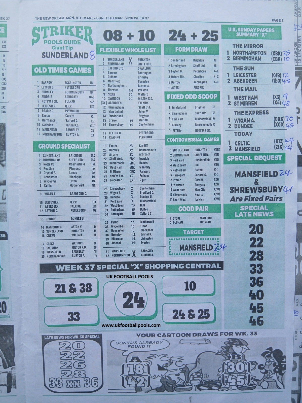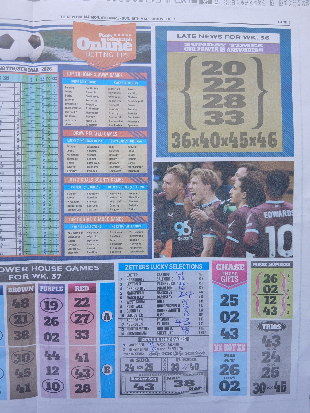 - Current Week 36 Pool Fixtures 2026 For Sat, 07 March - UK 2025/2026 Pools