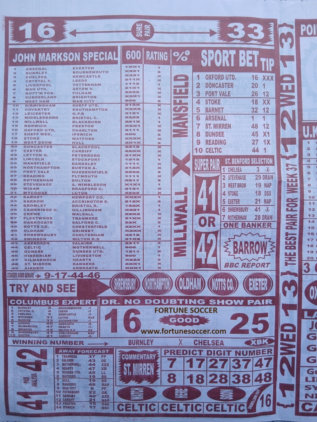 - Current Week 37 Pool Fixtures 2026 For Sat, 14 March - UK 2025/2026 Pools