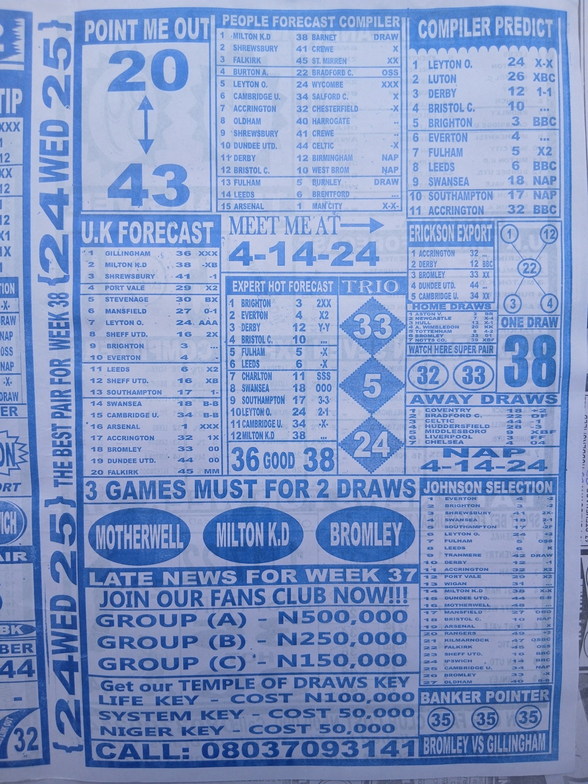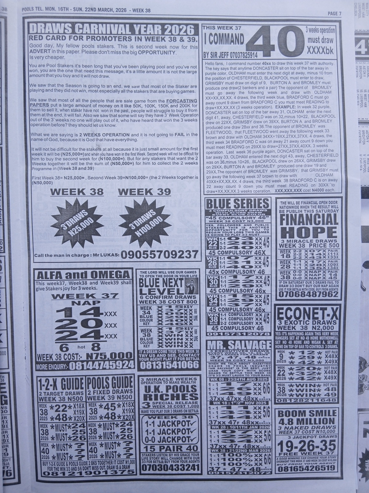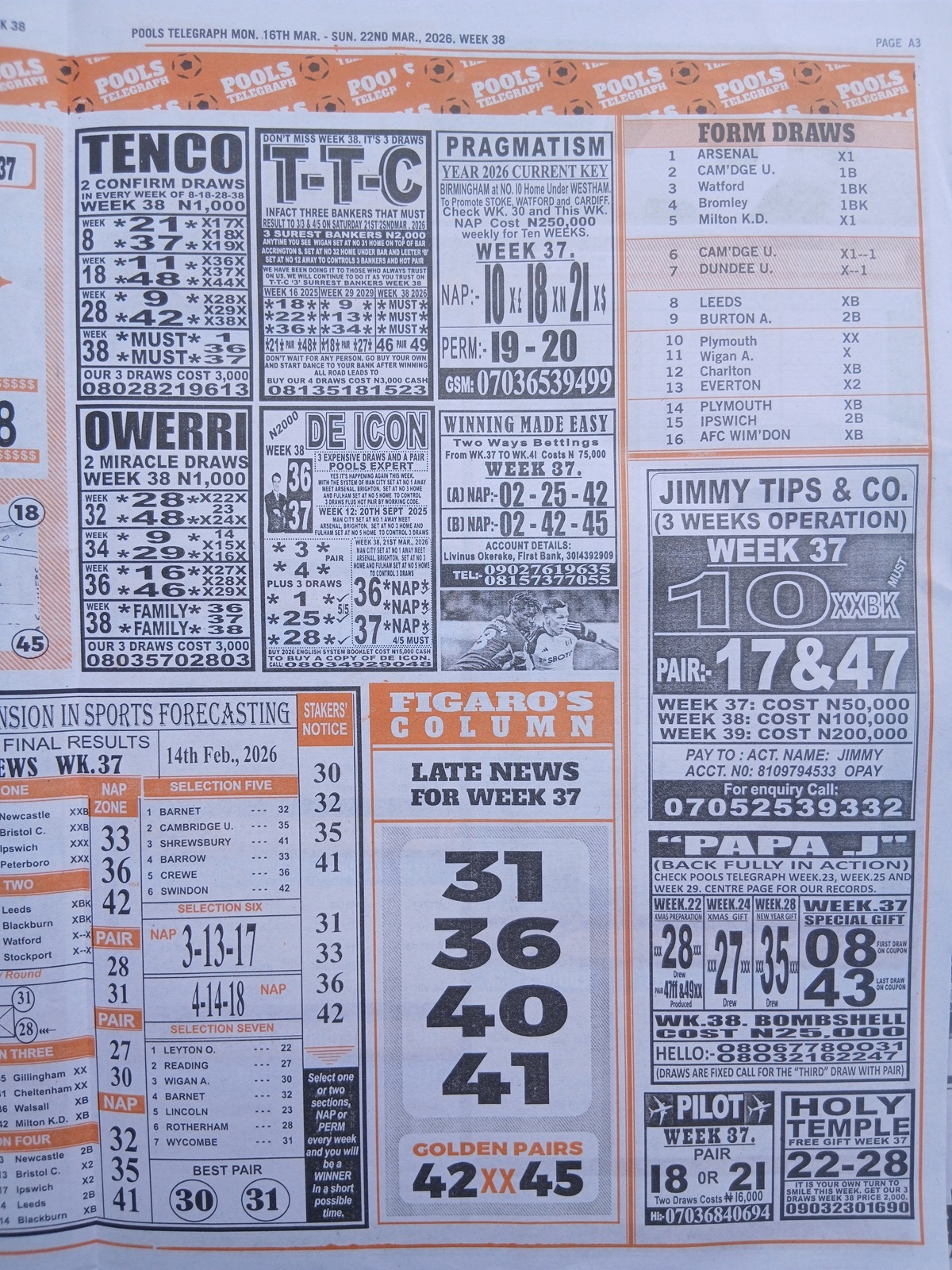 CHECK ALSO: Current Week 38 Pool Late News Papers 2026 ~ Sport Officer, Soccer Standard, Weekly Telegraph