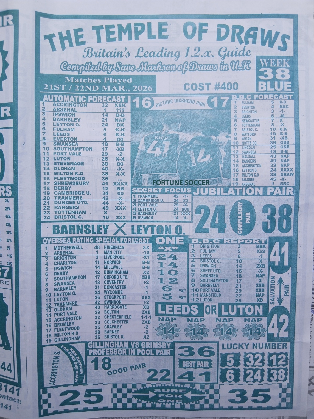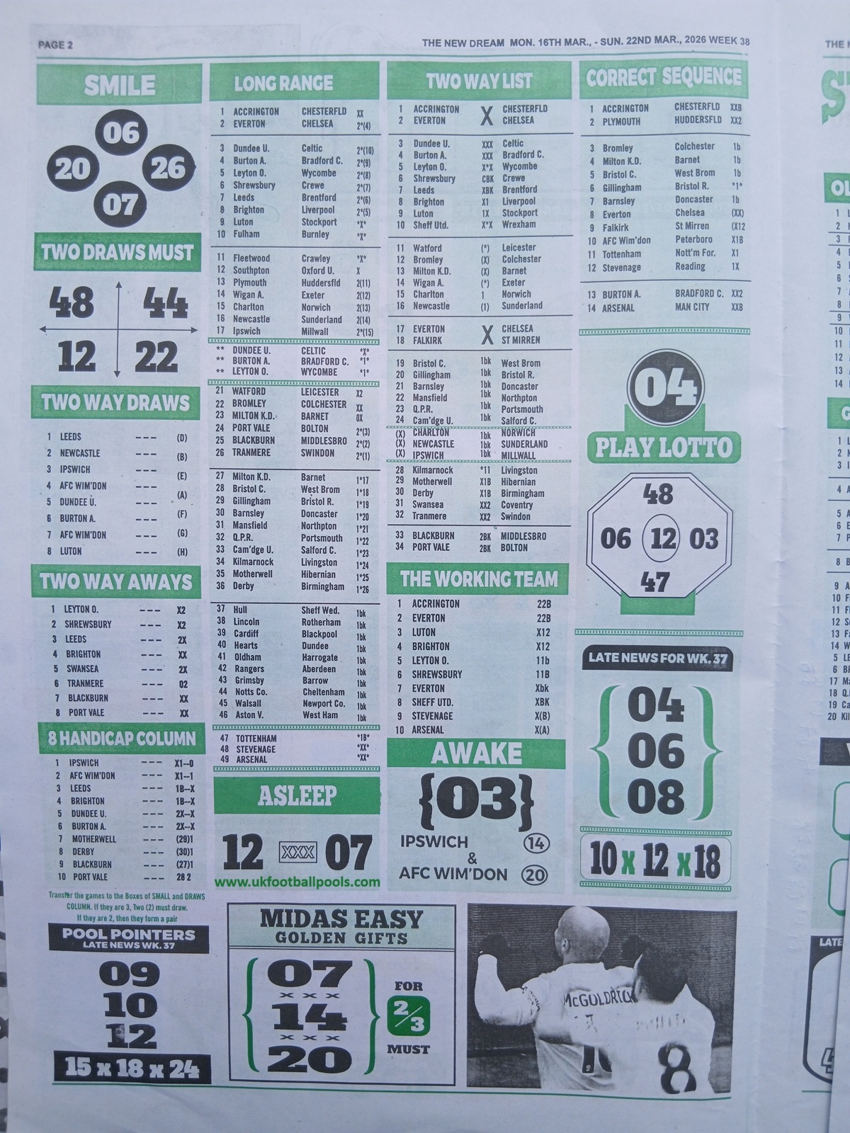 - Current Week 38 Pool Fixtures 2026 For Sat, 21 March - UK 2025/2026 Pools