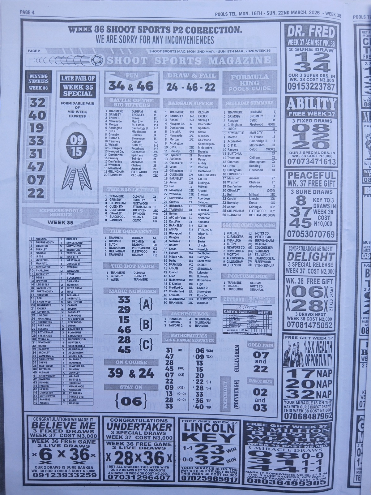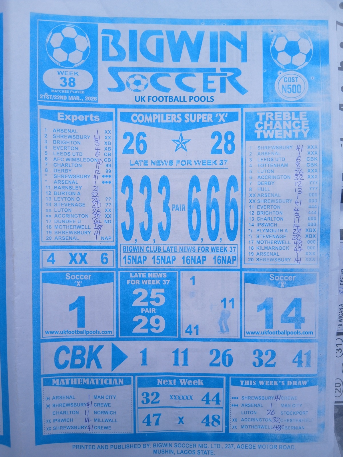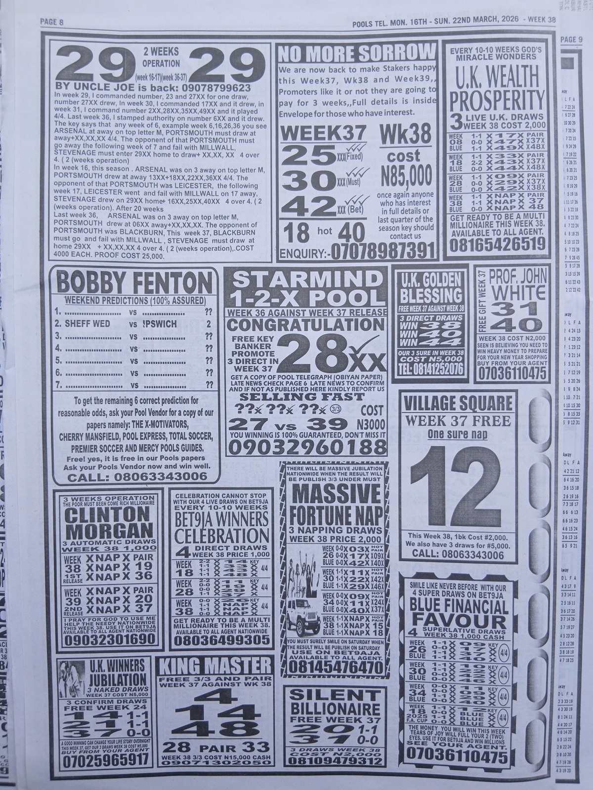 CHECK ALSO: Current Week 38 Pool Late News Papers 2026: Sport Officer, Soccer Standard, Weekly Telegraph
