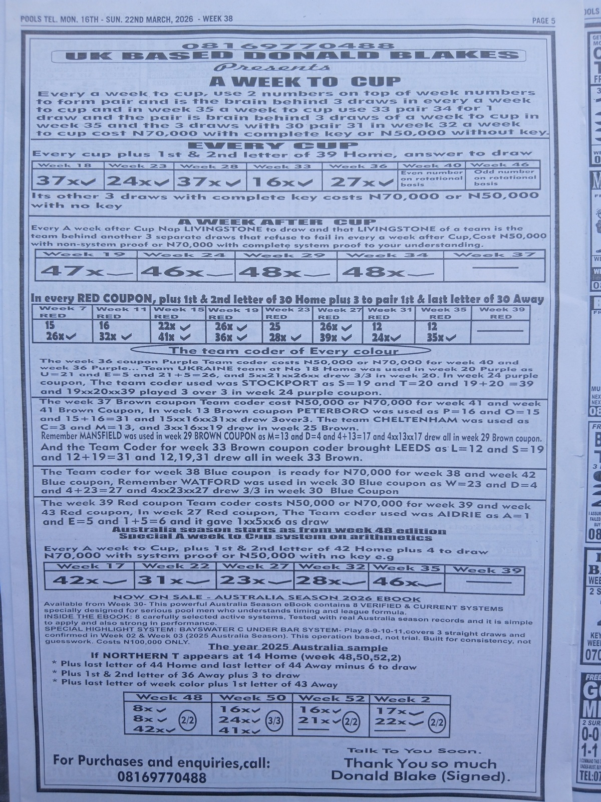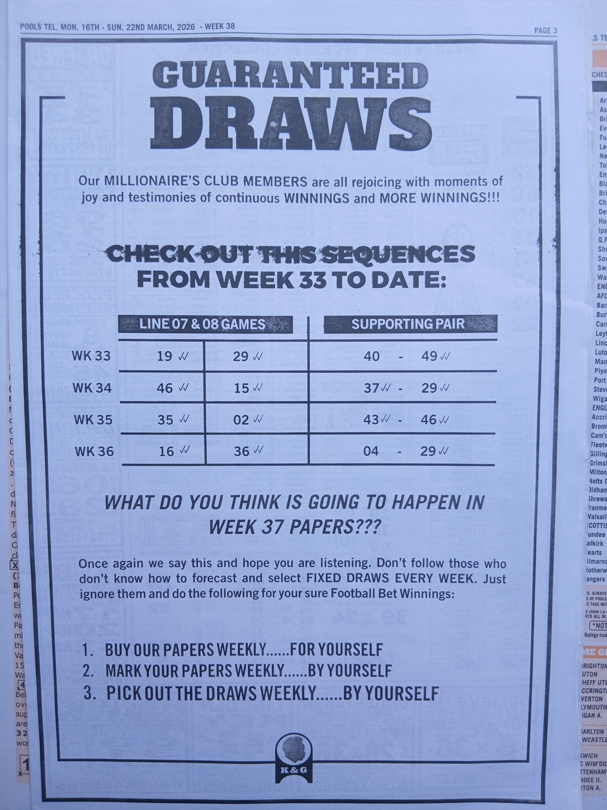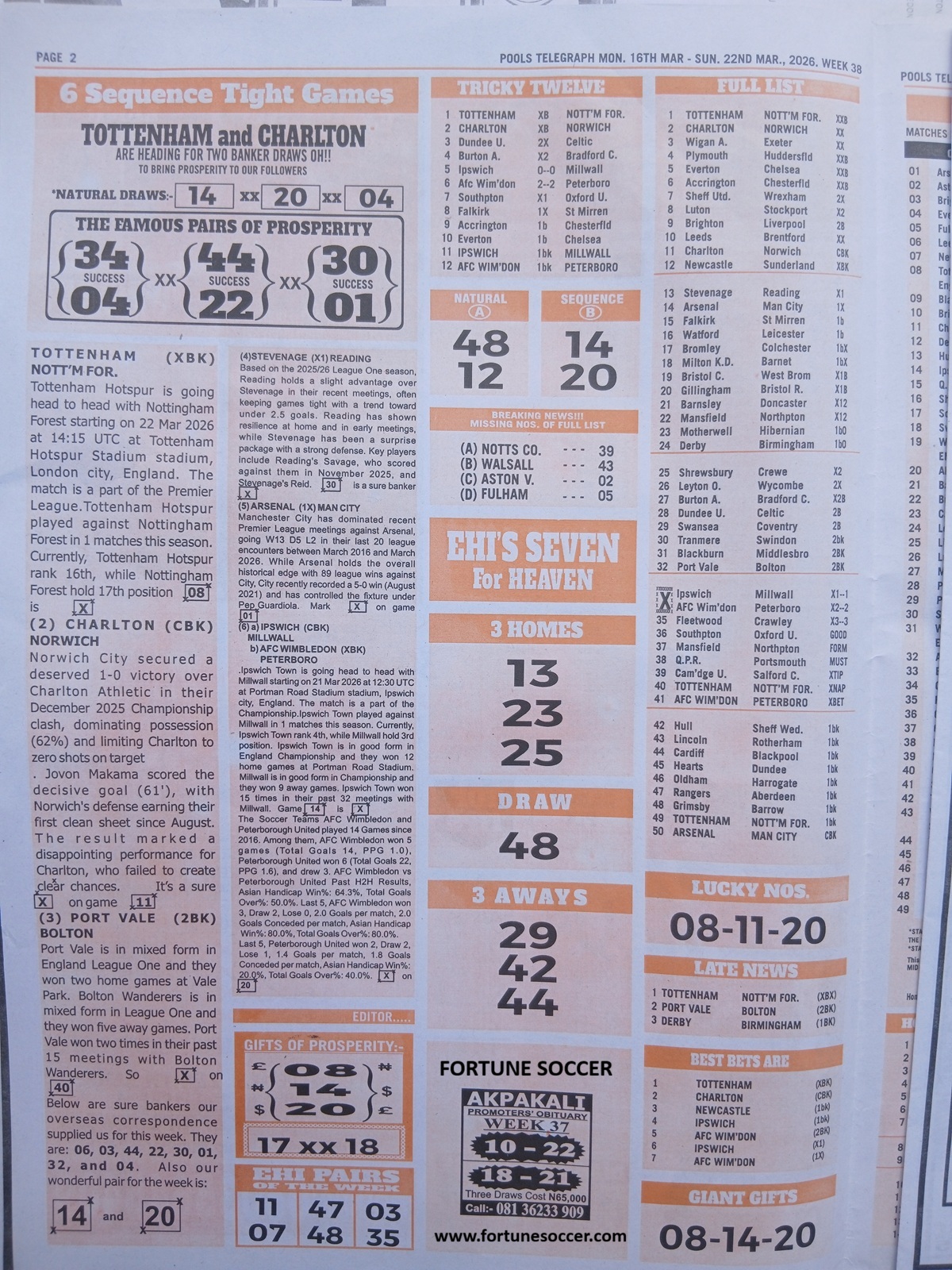 RELATED ARTICLE: Current week 38 Pool Late News Papers 2026 ~ BigWin, Pools Telegraph, Temple of Draws