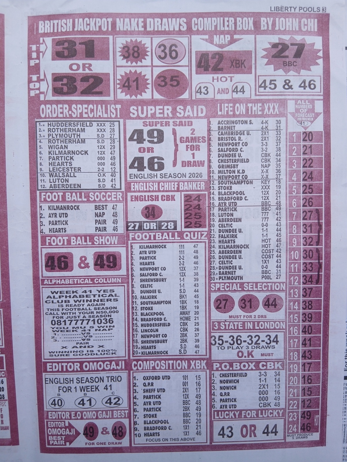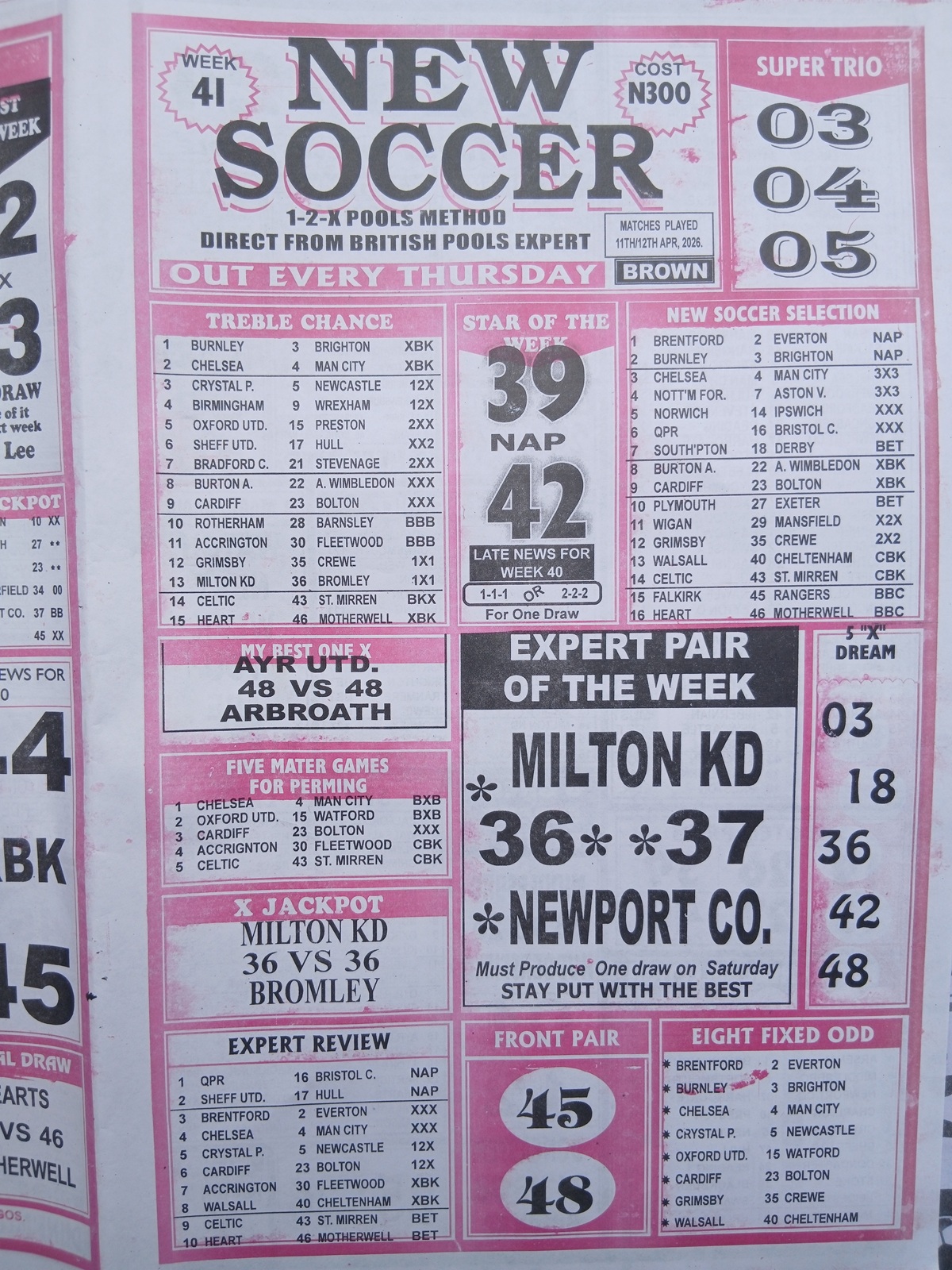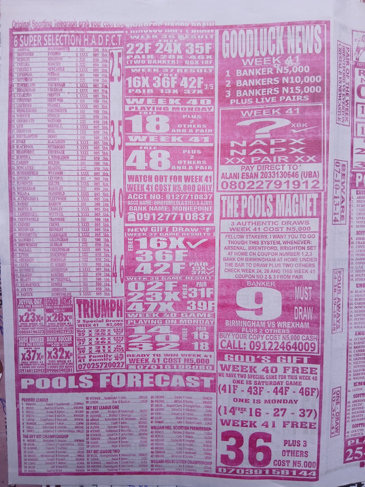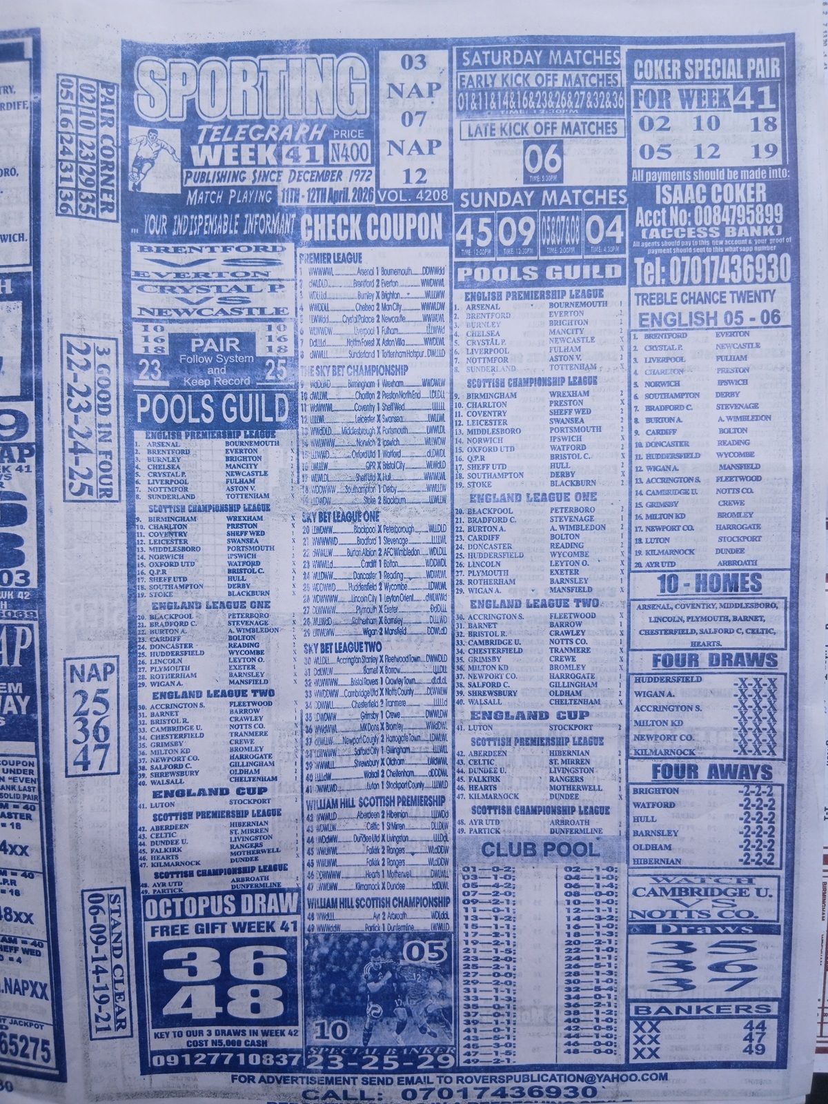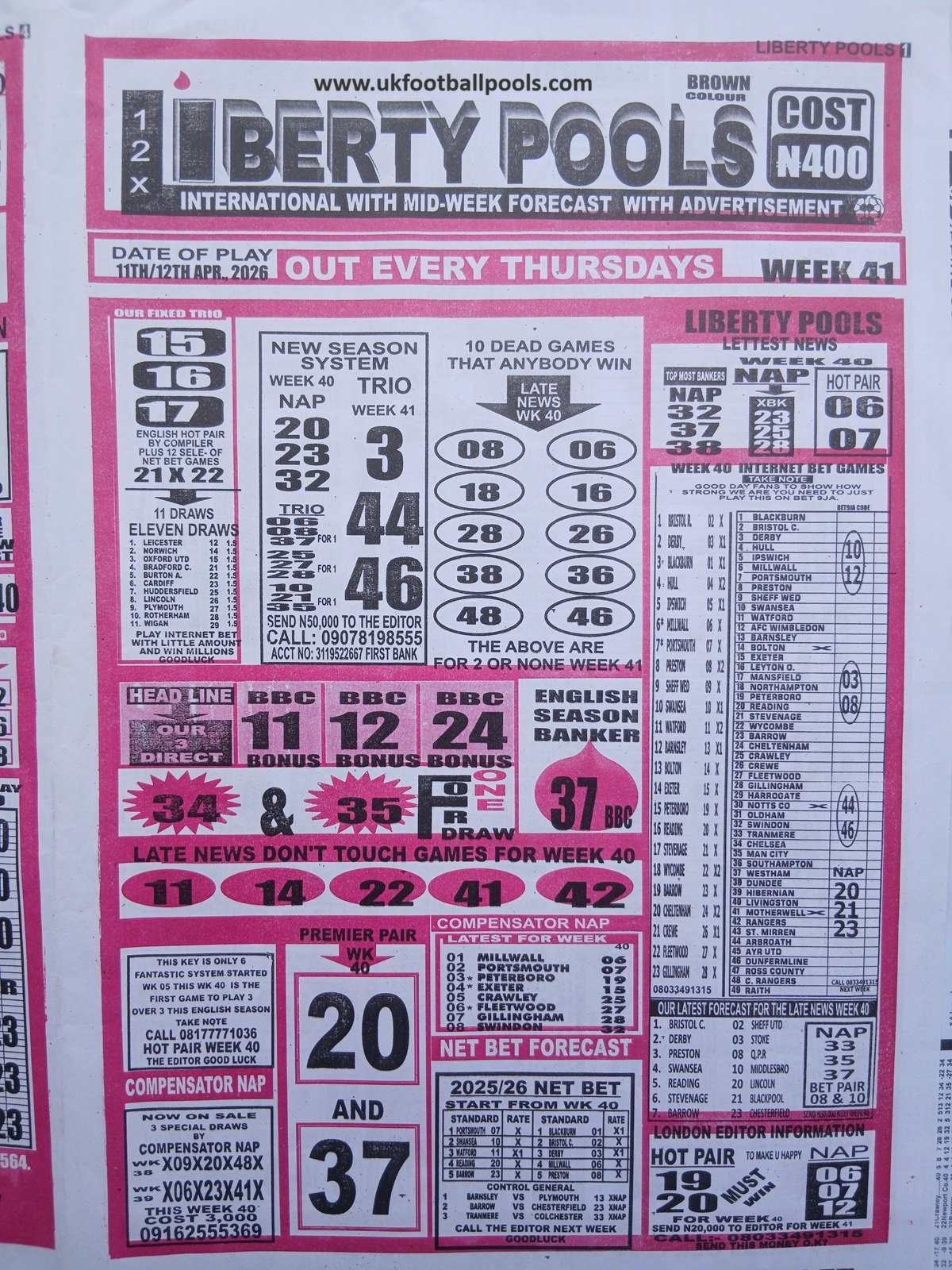 CHECK ALSO: Current Week 41 Pool Late News Papers 2026 ~ BigWin, Pools Telegraph, Temple Of Draws