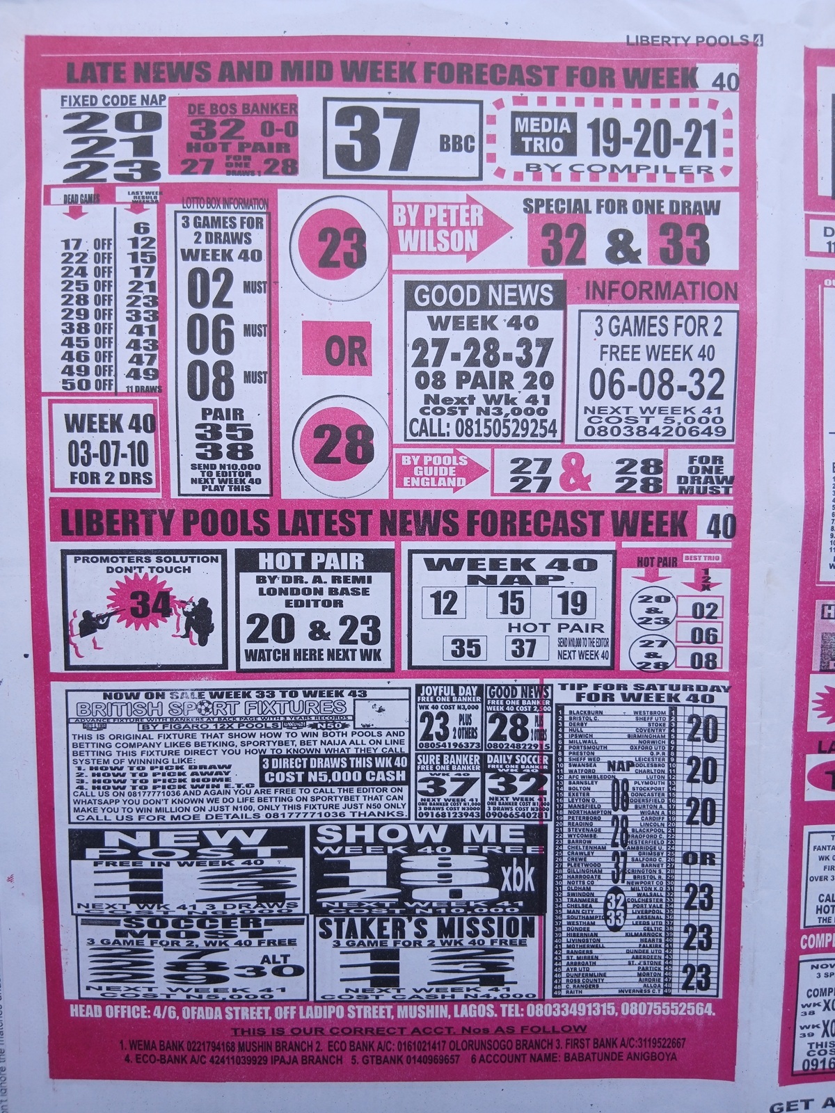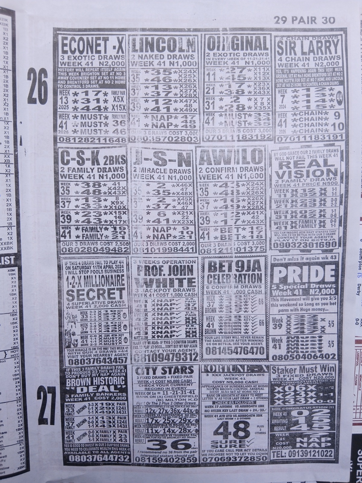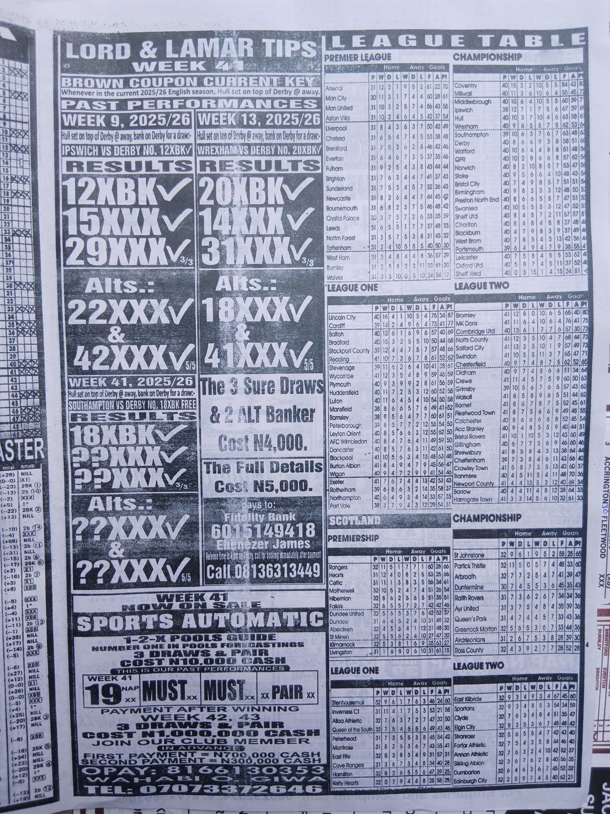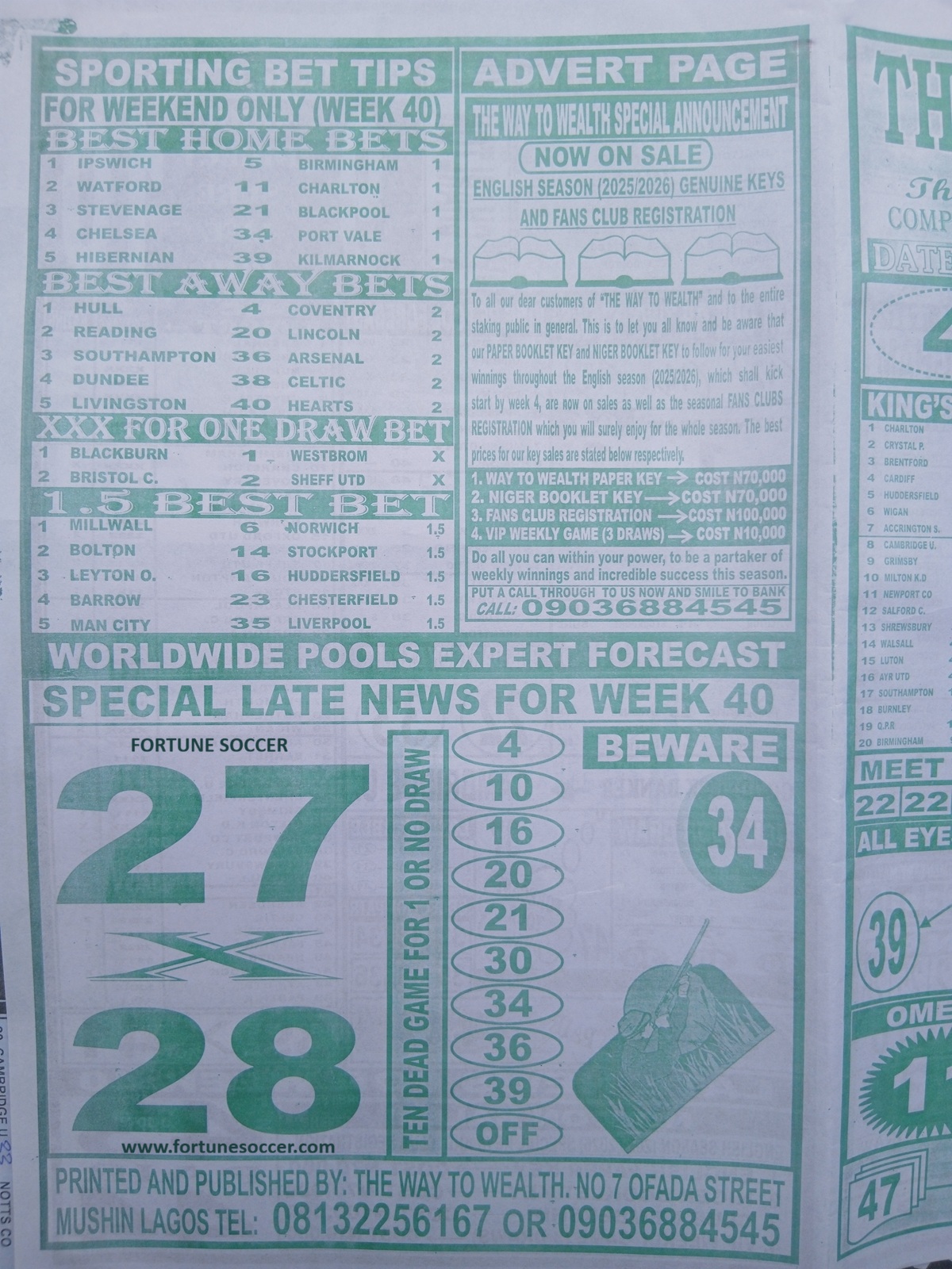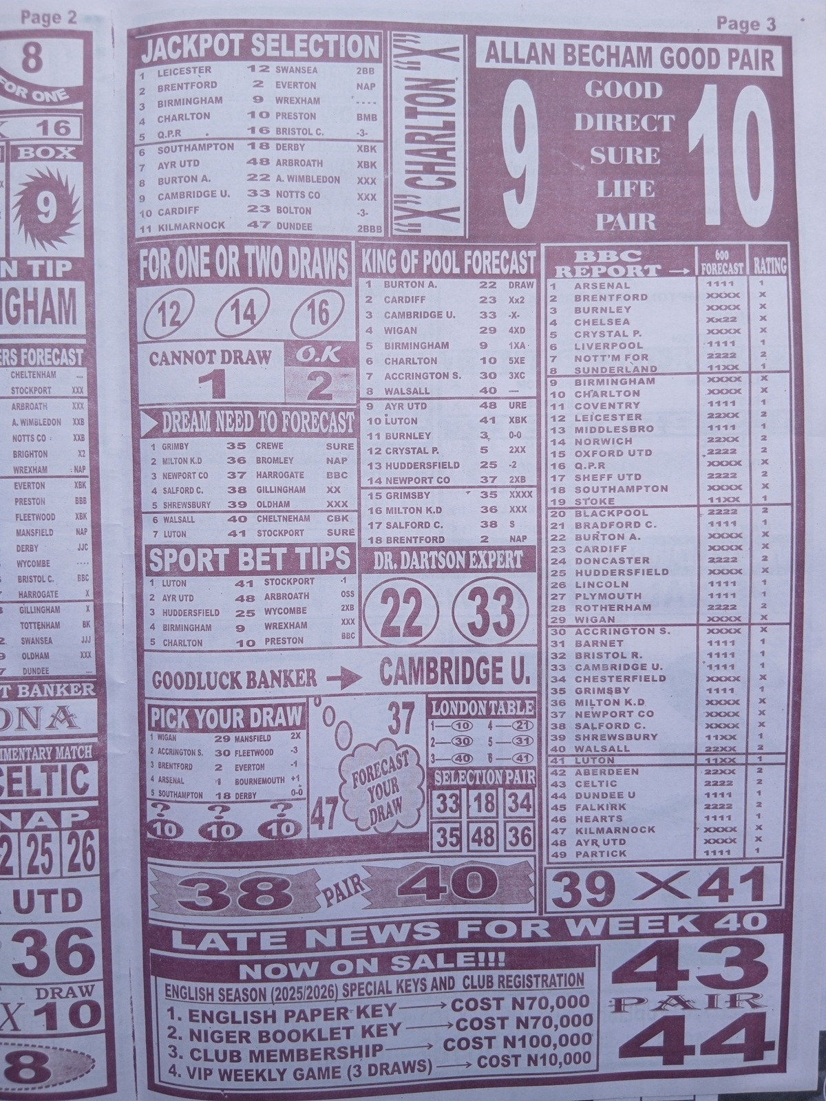 CHECK ALSO: Current Week 41 Pool Late News Papers 2026 ~ BigWin, Pools Telegraph, Temple Of Draws