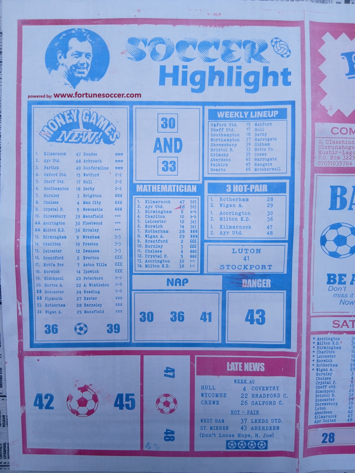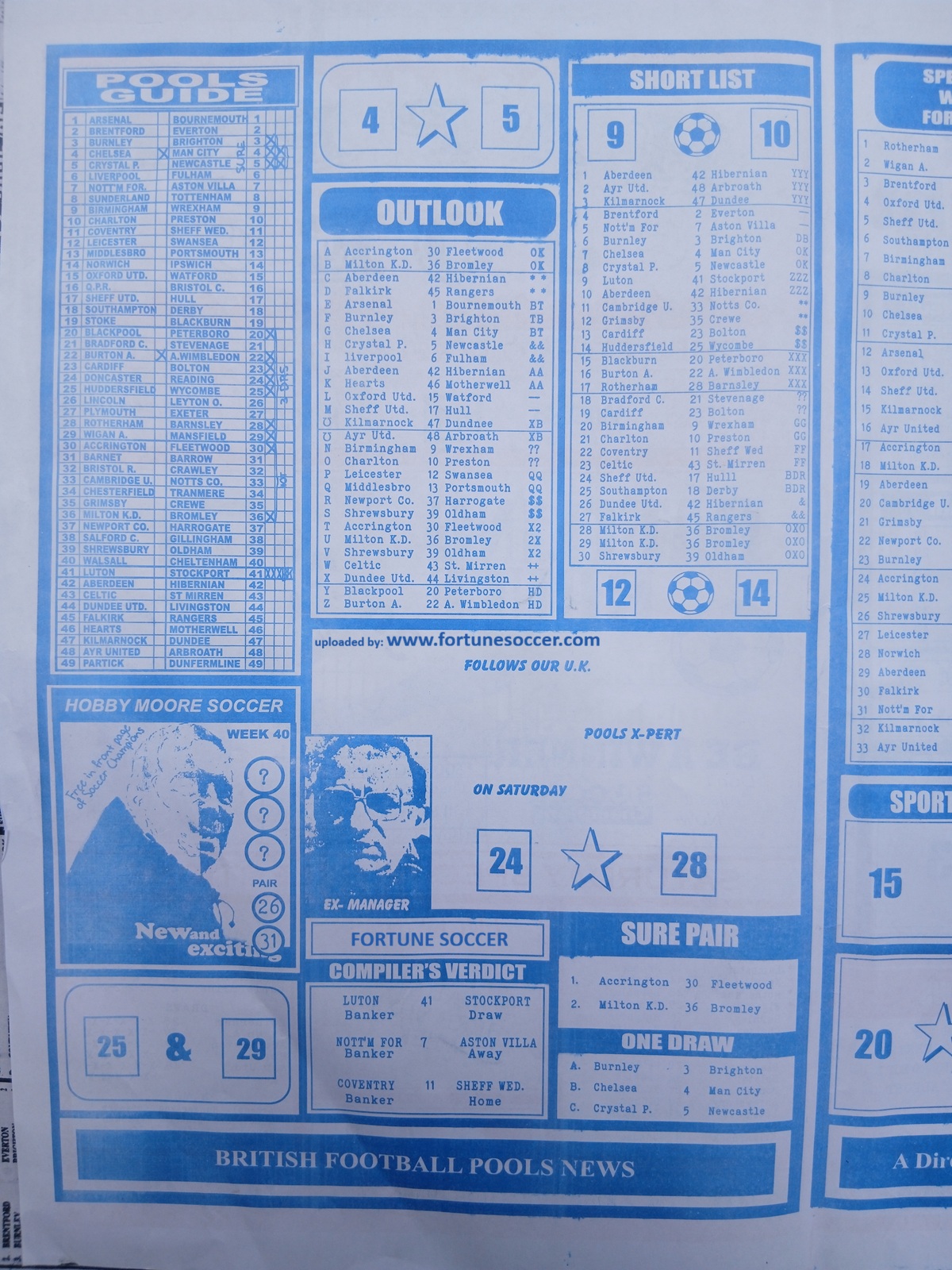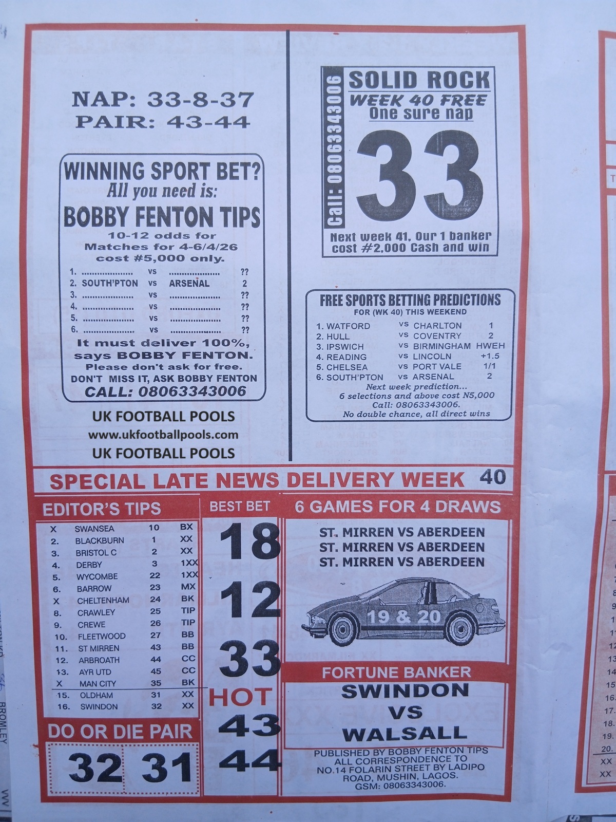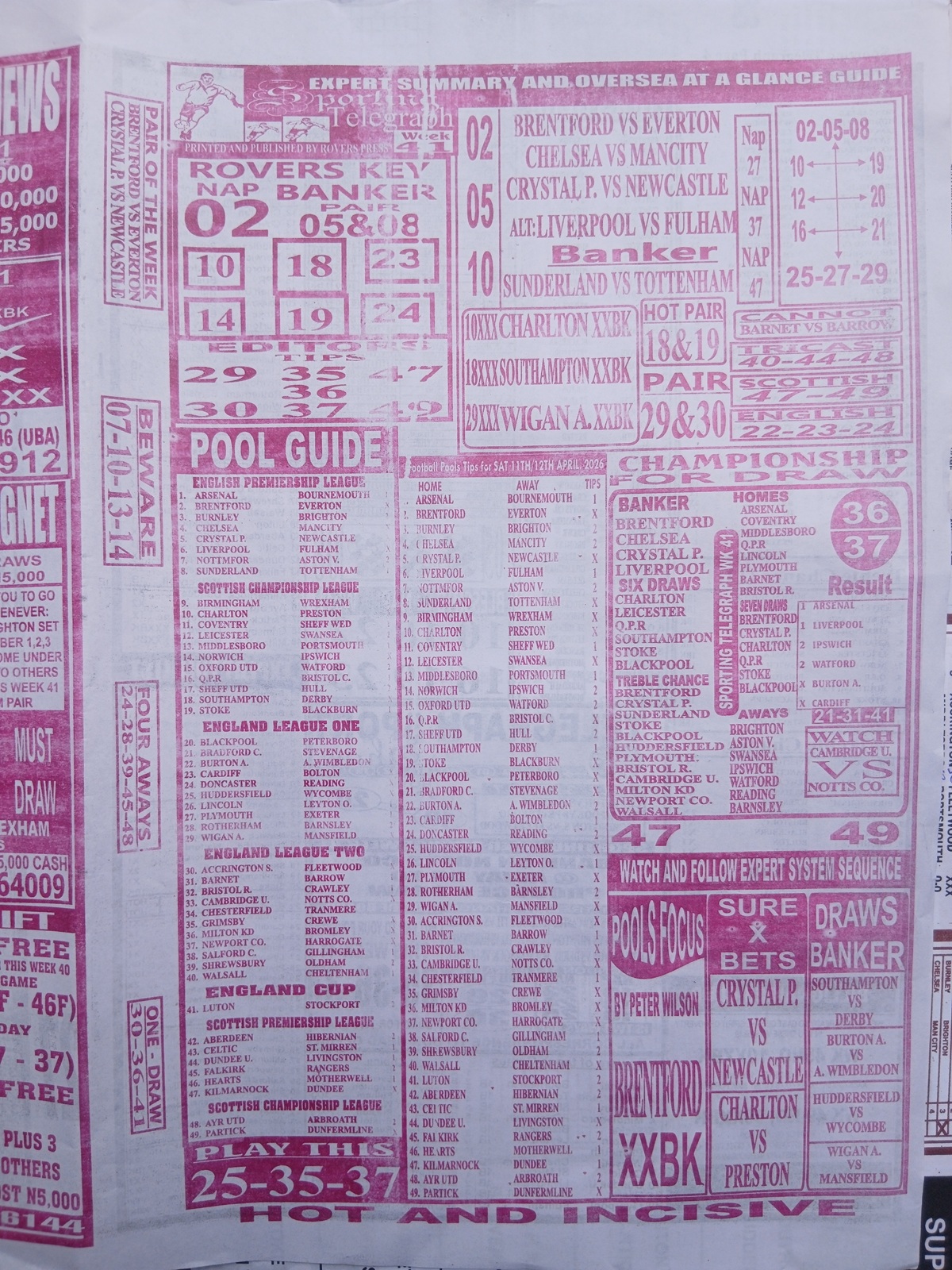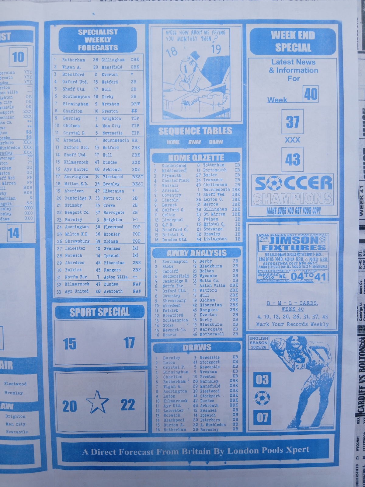 Week 41 Late News Papers: the late editions and specialized pool papers published specifically for pool compilers and punters — are not just collections of picks. They are the product of hours (often decades) of dedicated observation: pattern recognition across seasons, reading manager/team news, injury and suspension updates, pitch and weather considerations, crowd effects, and statistical tendencies such as form cycles and home/away differentials.