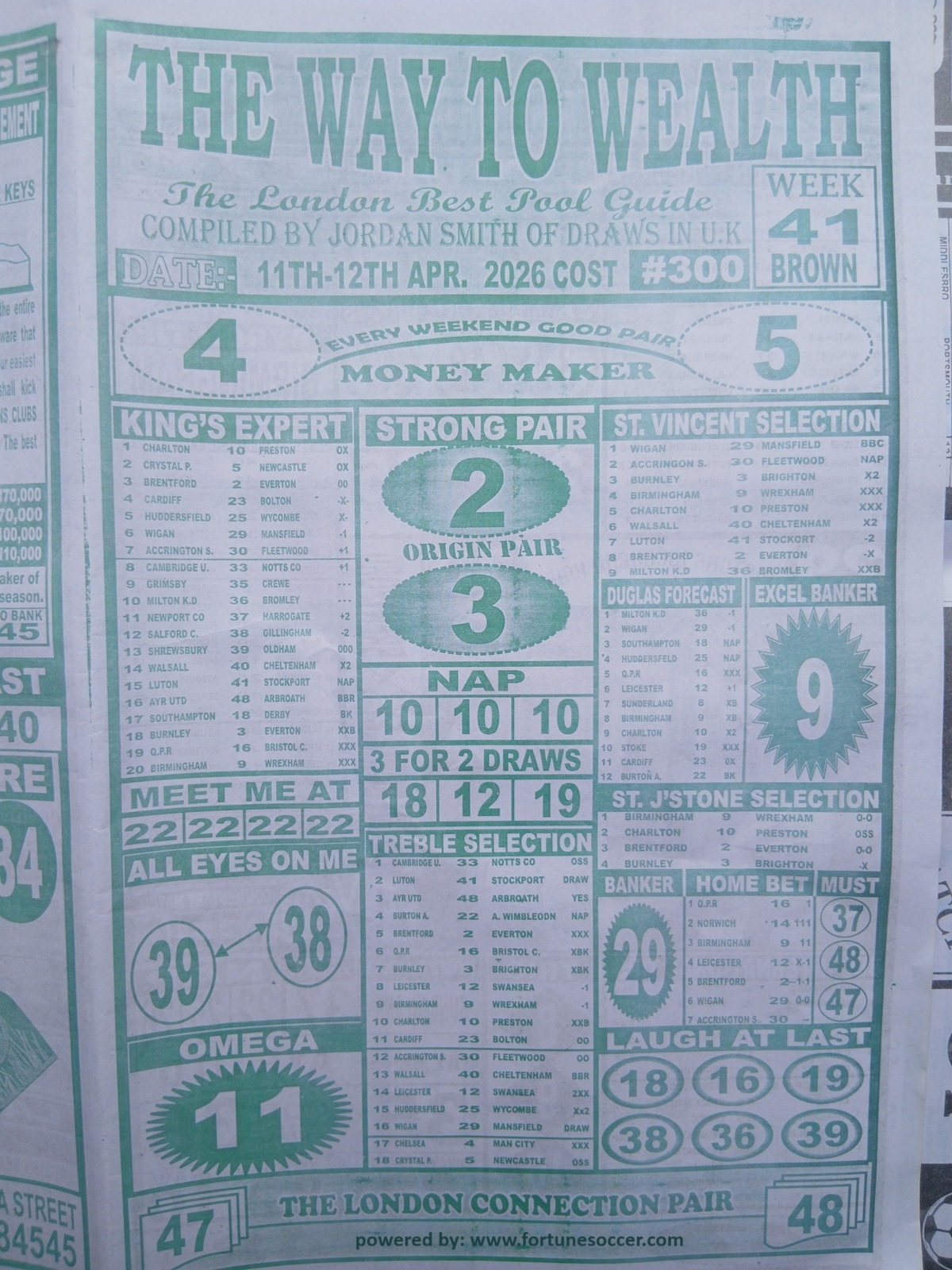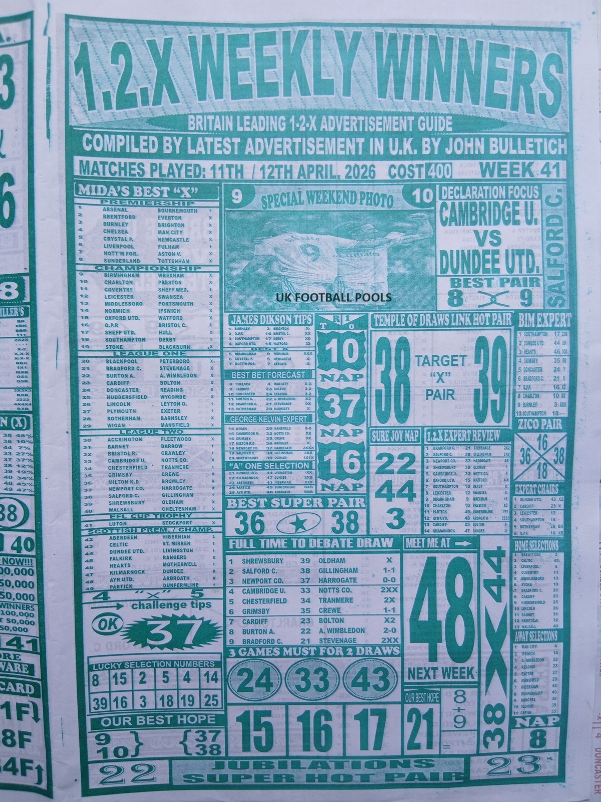 - Current Week 41 Pool Results 2026 For Sat, April 11 - UK 2025/2026 Pools